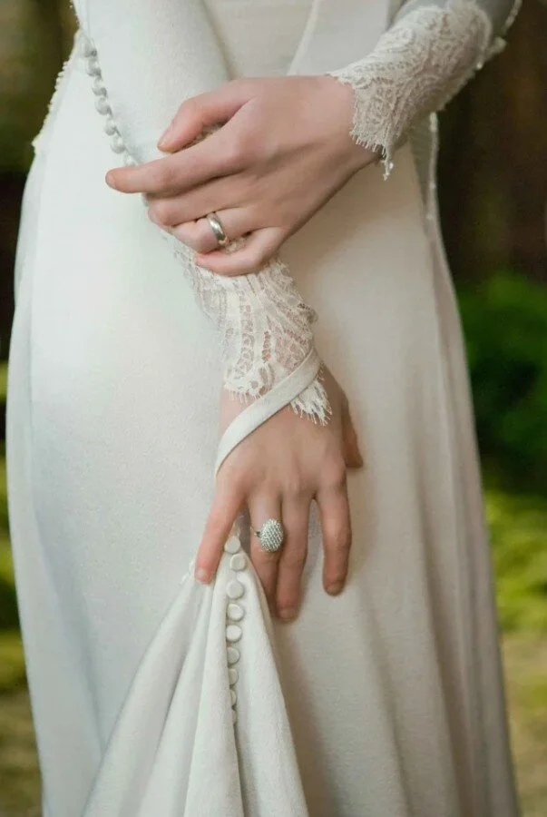 Обручальное кольцо с бриллиантами было создано специально для фильма брендом “Infinite Jewelry Co”. Также в его создании приняла участие автор книг о вампирах Стефани Майер. Это украшение желали получить все невесты 2010-2011 годов.