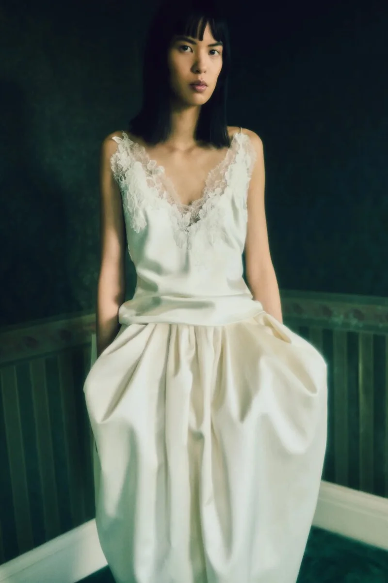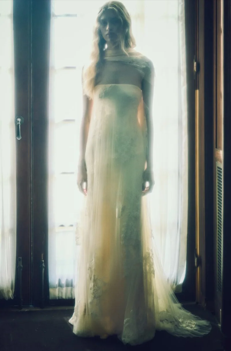 Здесь нет откровенно трендовых моделей, зато хватает невероятно изящных сложных силуэтов. Также в коллекцию вошли и довольно минималистичные образы - майка с нежным кружевом и пышная юбка яркий тому пример. Такой наряд можно надеть и в обычный день, а не только на свадьбу.
