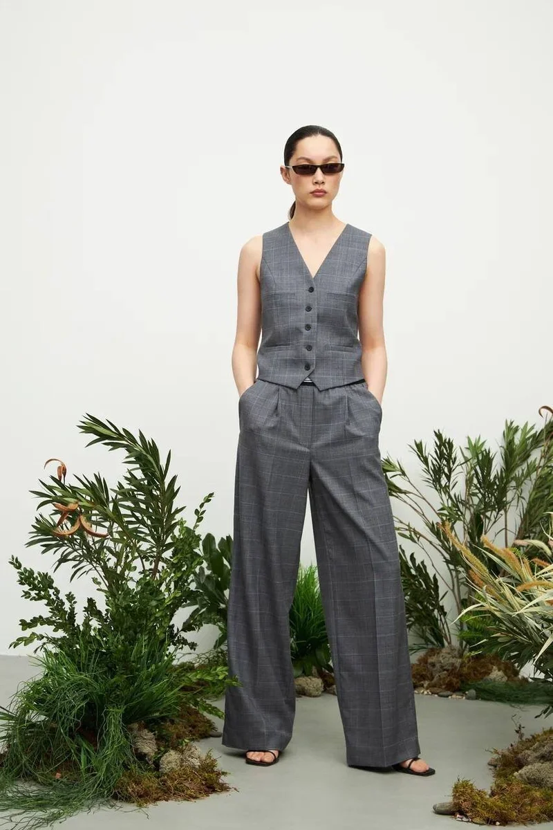 В коллекцию также вошли элегантные брюки, жилетки и приталенные жакеты. Смотрятся сеты довольно женственно и минималистично. Еще один вариант универсального образа.