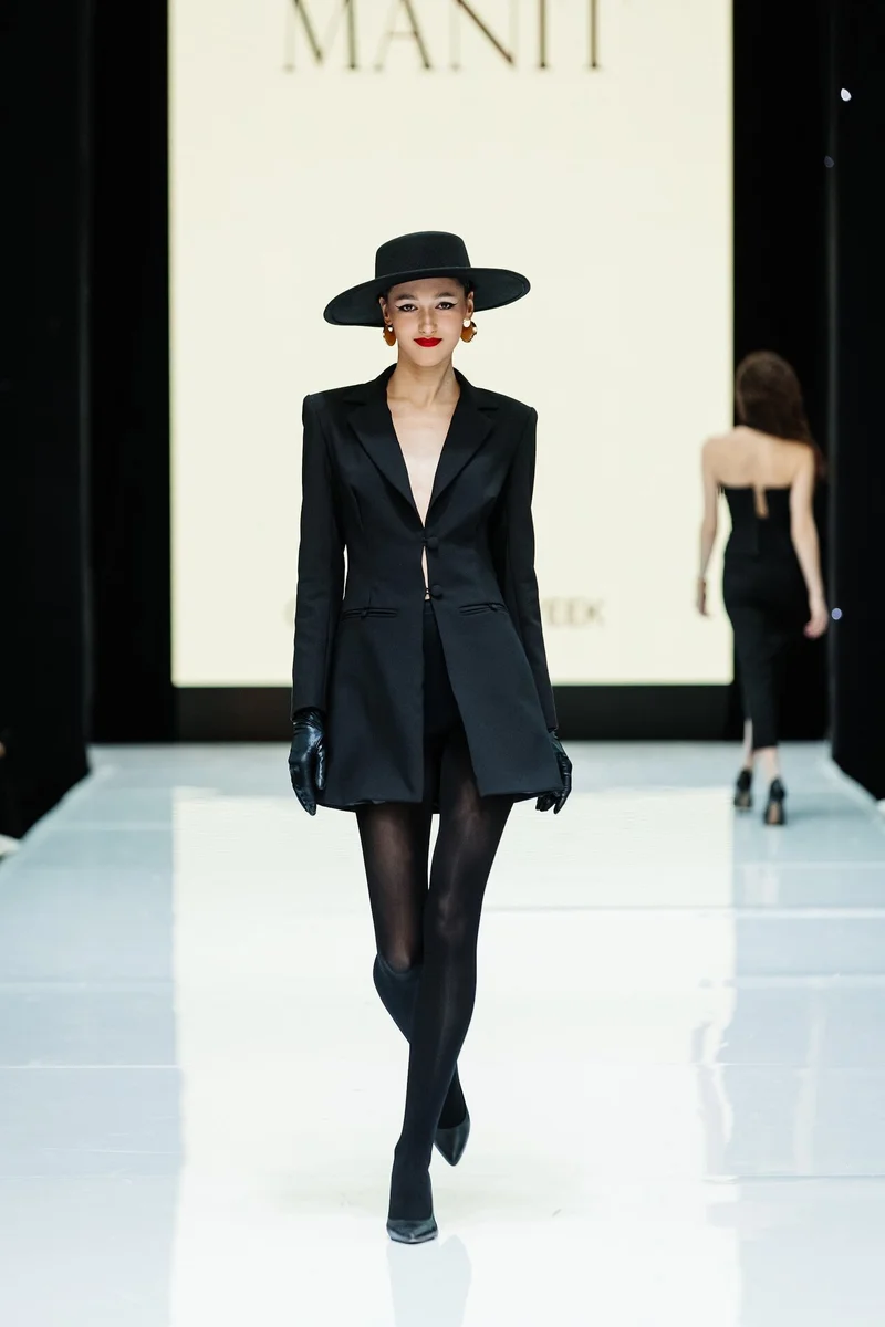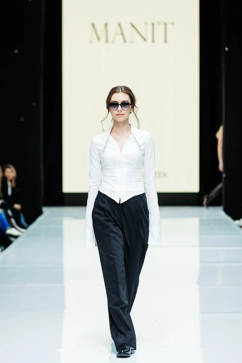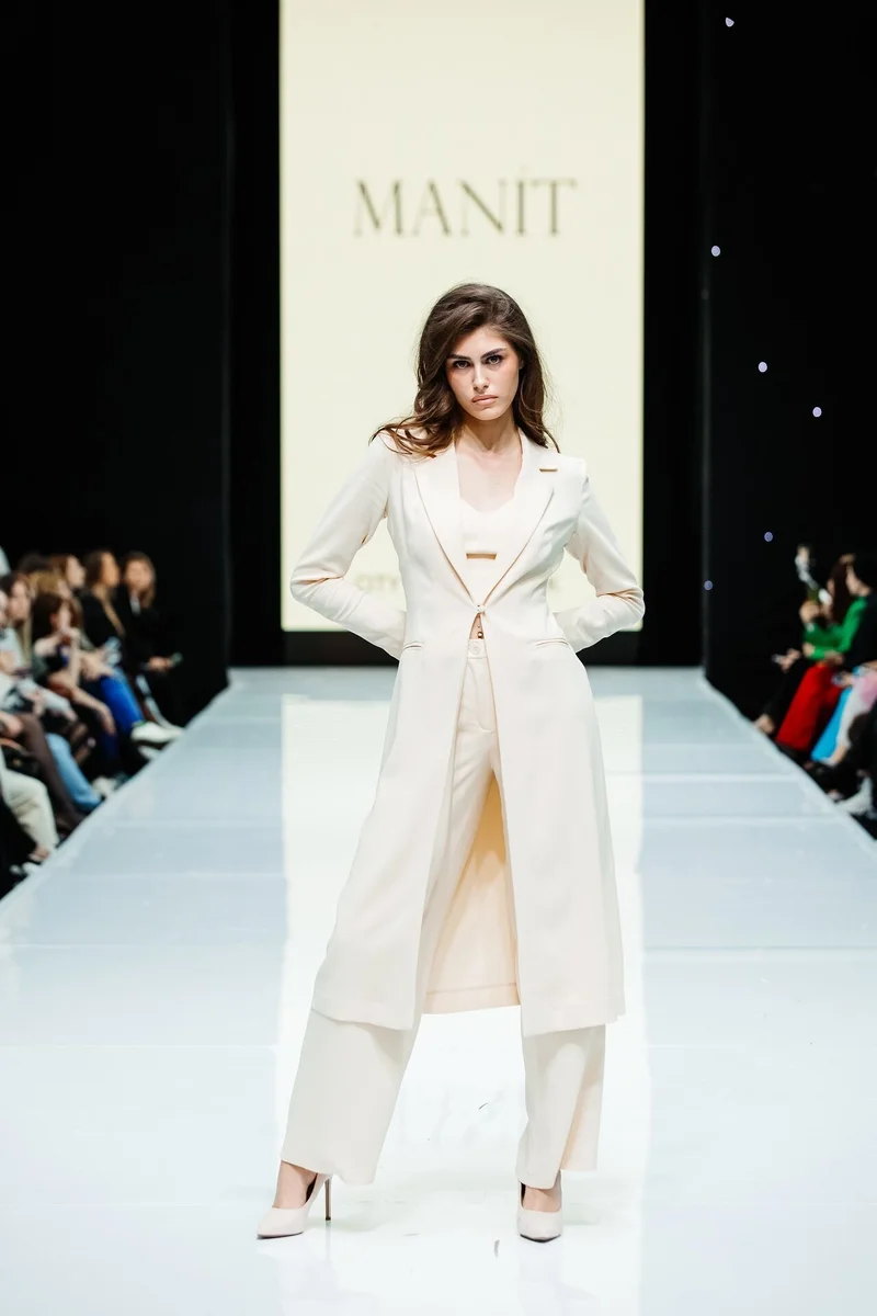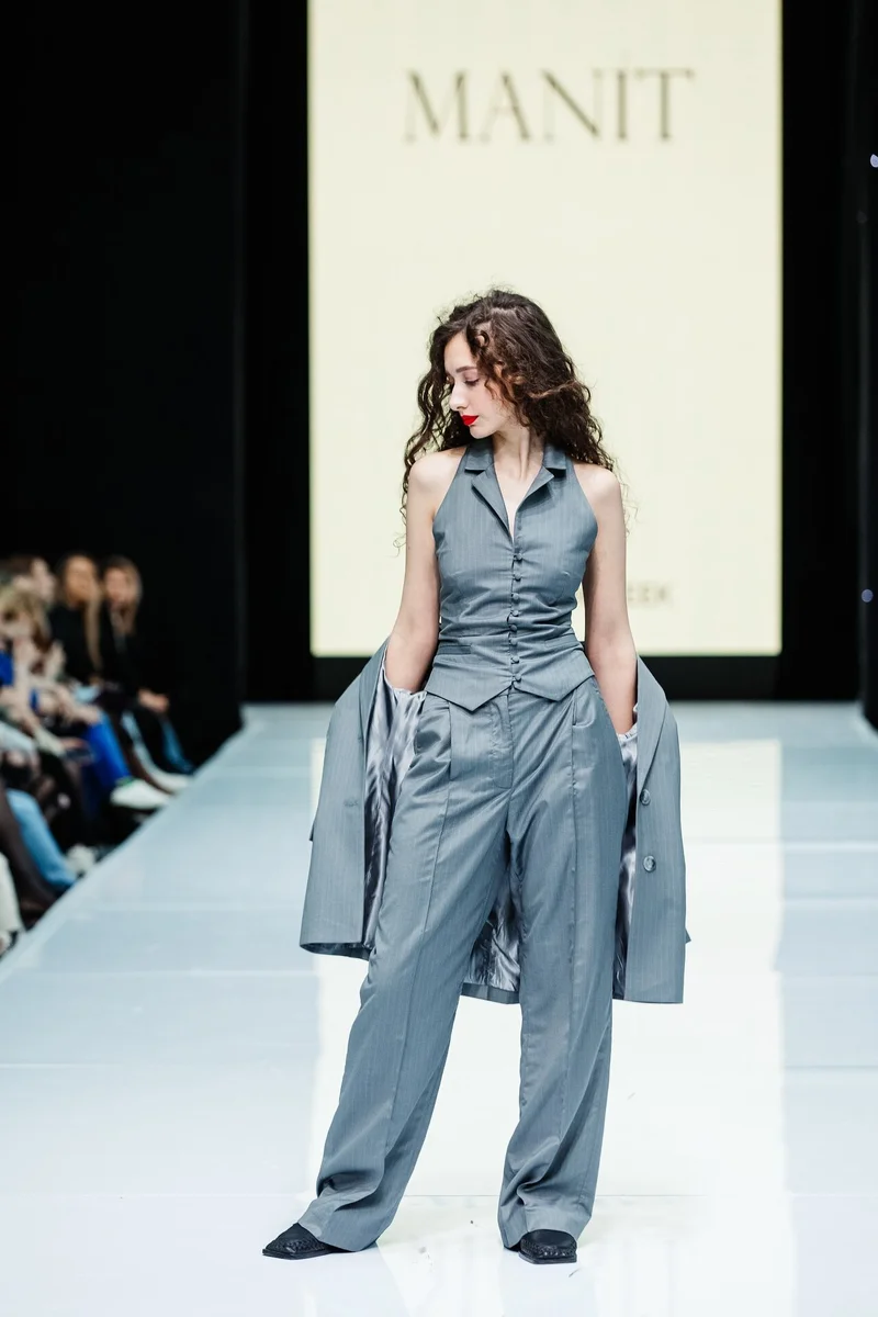 MANIT – молодой российский бренд женской одежды, который вышел на рынок в конце 2022 года и уже успел себя зарекомендовать, как производитель стильной одежды премиального качества в среднем ценовом сегменте. Новая коллекция MANIT погрузила гостей в эпоху 90-x, которая близка основной стилистике бренда. На подиуме были представлены классические брючные и юбочные костюмы с корсетными жилетами, а также вечерние силуэтные и повседневные лаконичные образы.