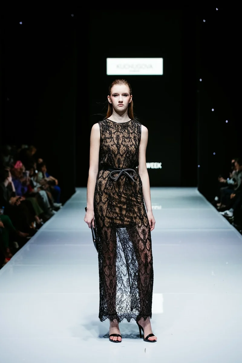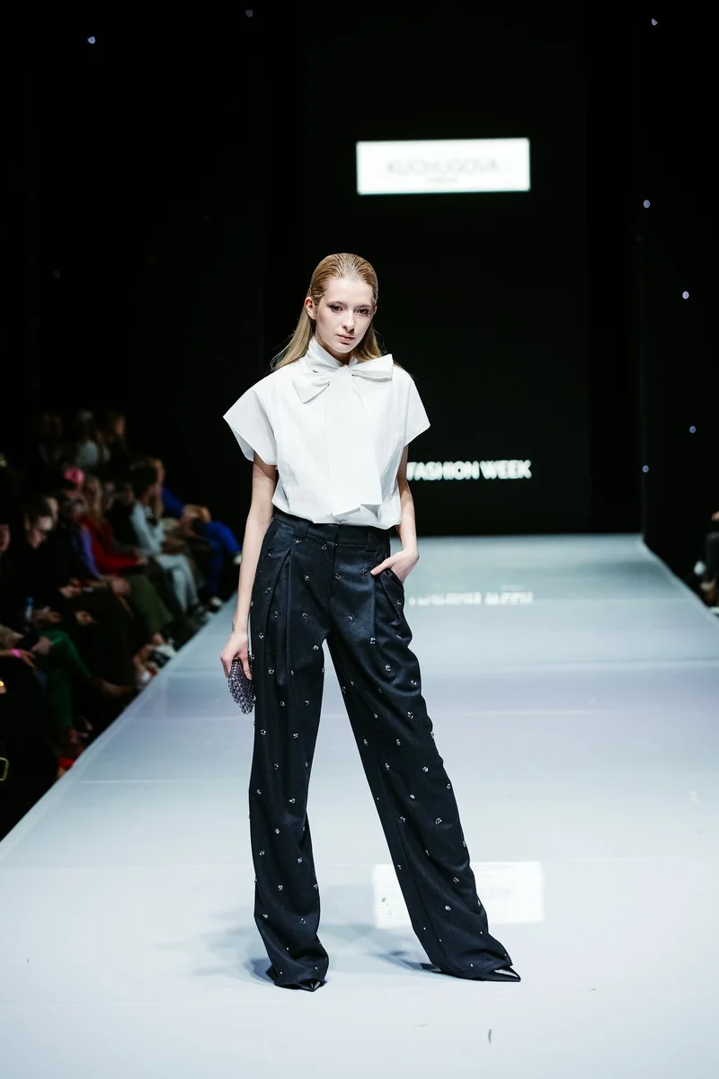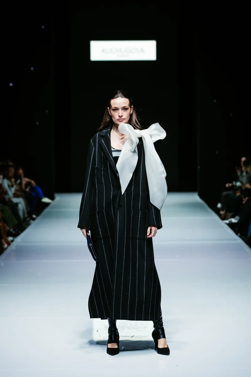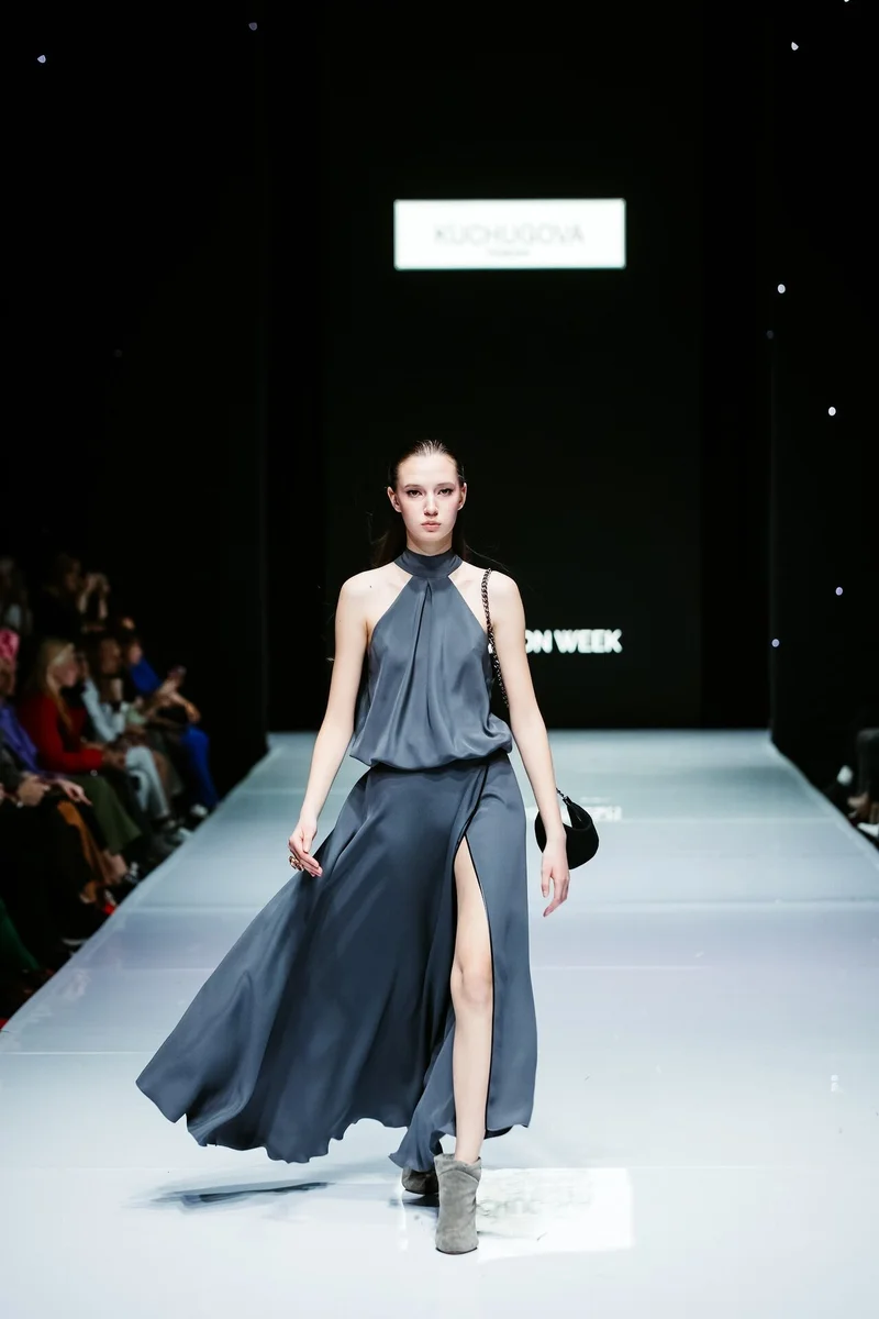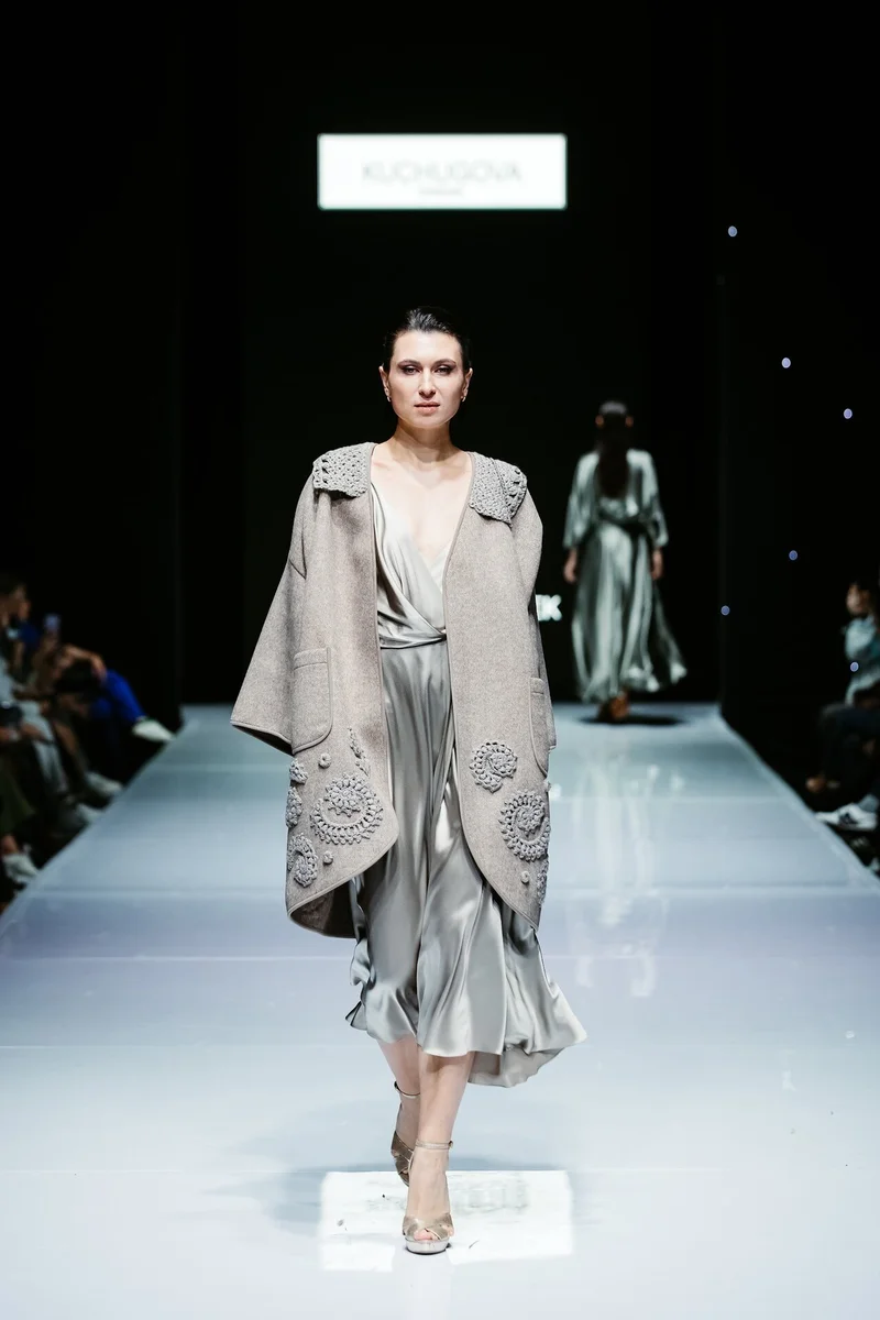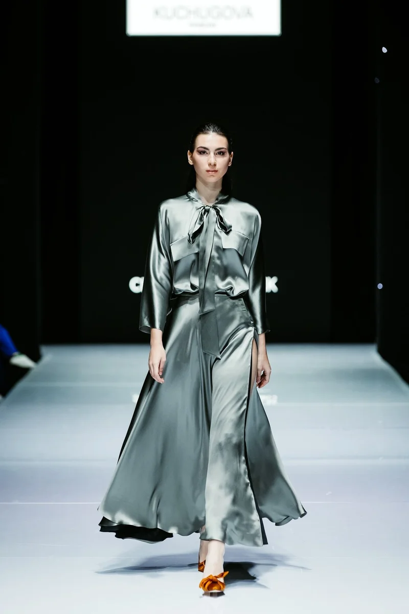 Завершил третий день показ от хэдлайнера KUCHUGOVA, именного бренда дизайнера Анастасии Кучуговой. В сезоне осень/зима 2023-24 года на подиуме Недели City Fashion Week бренд размышляет на тему объединения культур Востока и Запада. В своей новой коллекции «Lakshmi» Анастасия Кучугова с легкостью смешивает восточную роскошь с европейской практичностью и удобством и использует аутентичные индийские ткани, расшитые вручную, в работе с европейским кроем. В выборе тканей, как и всегда бренд отдает предпочтение натуральным тканям: шелку, шерсти, кашемиру, органзе и вышитой тафте.