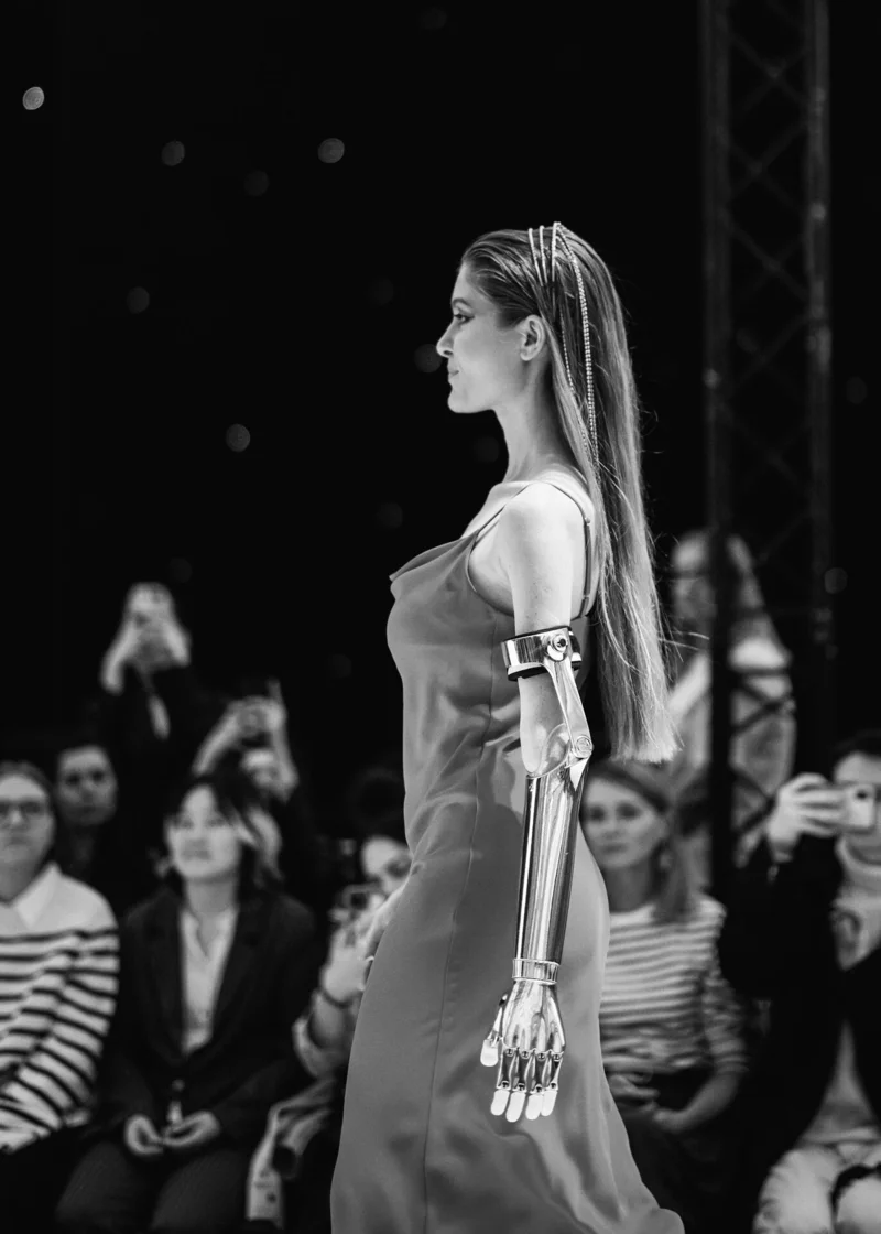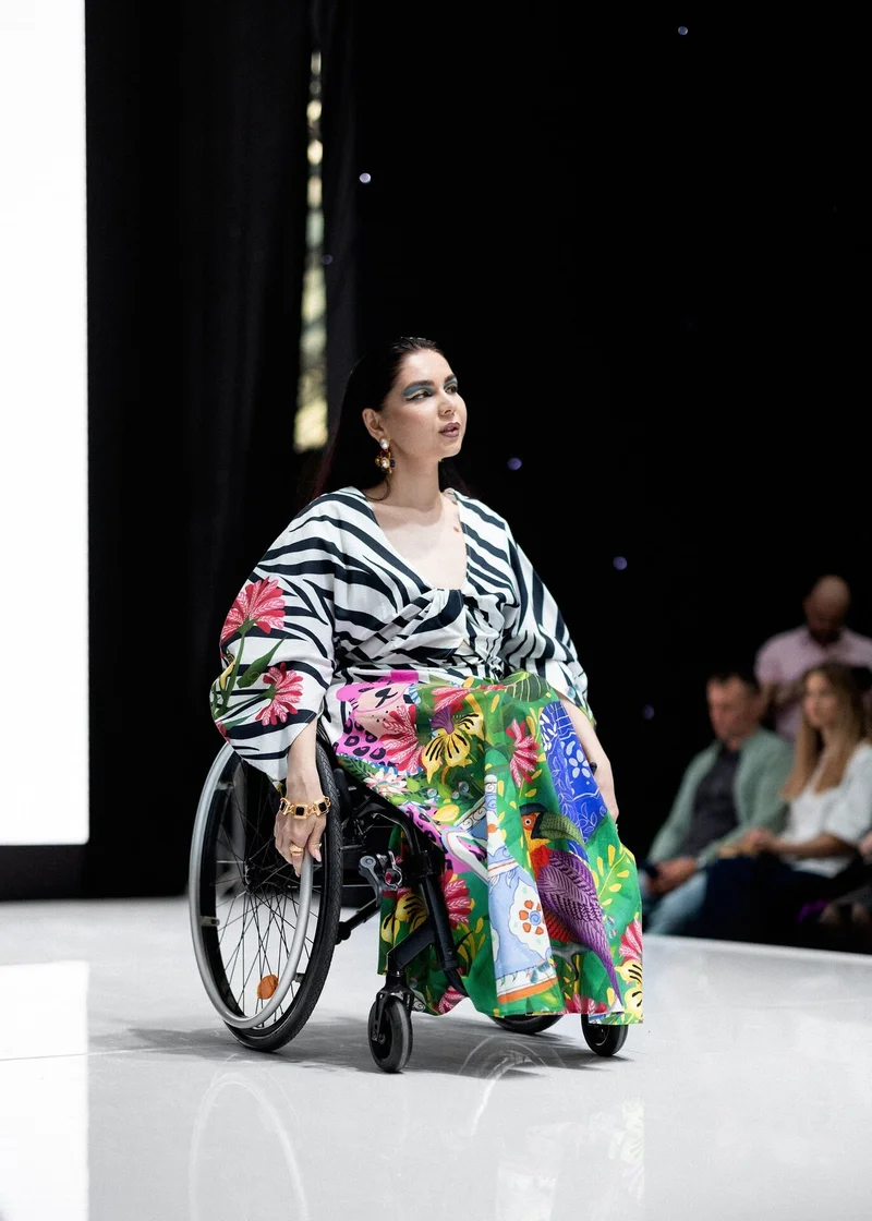 Далее свою совместную творческую коллаборацию зрителям представили Некоммерческая организация «Открытый мир» и российский дизайнер женской одежды Ксения Князева. Среди участниц-моделей на подиуме выступили девушки с различными формами ограничений – использующие инвалидные коляски, протезы рук и ног, модели с ДЦП. В коллекции были представлены изящные женственные силуэты и актуальные принты, геометрия в стилистике и интересный крой – все для ярких персон, открытых миру.
