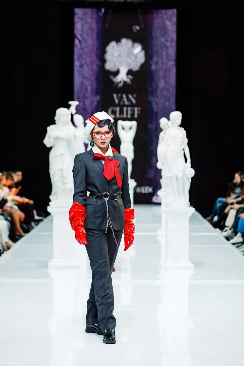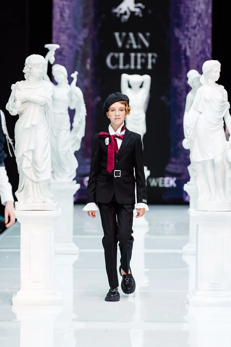 Зеркальное шоу на подиуме устроил Van Cliff. Изделия бренда в полной мере отразила символизм Эпохи Возрождения, погрузив в нее гостей. Декорации, музыка, каждая деталь передавала атмосферу того времени. Коллекция воплотила в детском ассортименте лучшие традиции качества и технологий взрослой мужской «классики»: костюмов, пиджаков, сорочек, трикотажа. Классическая одежда создает особый настрой и тот образ, который позволяет увидеть в ребенке будущего мужчину, опору семьи и защитника.