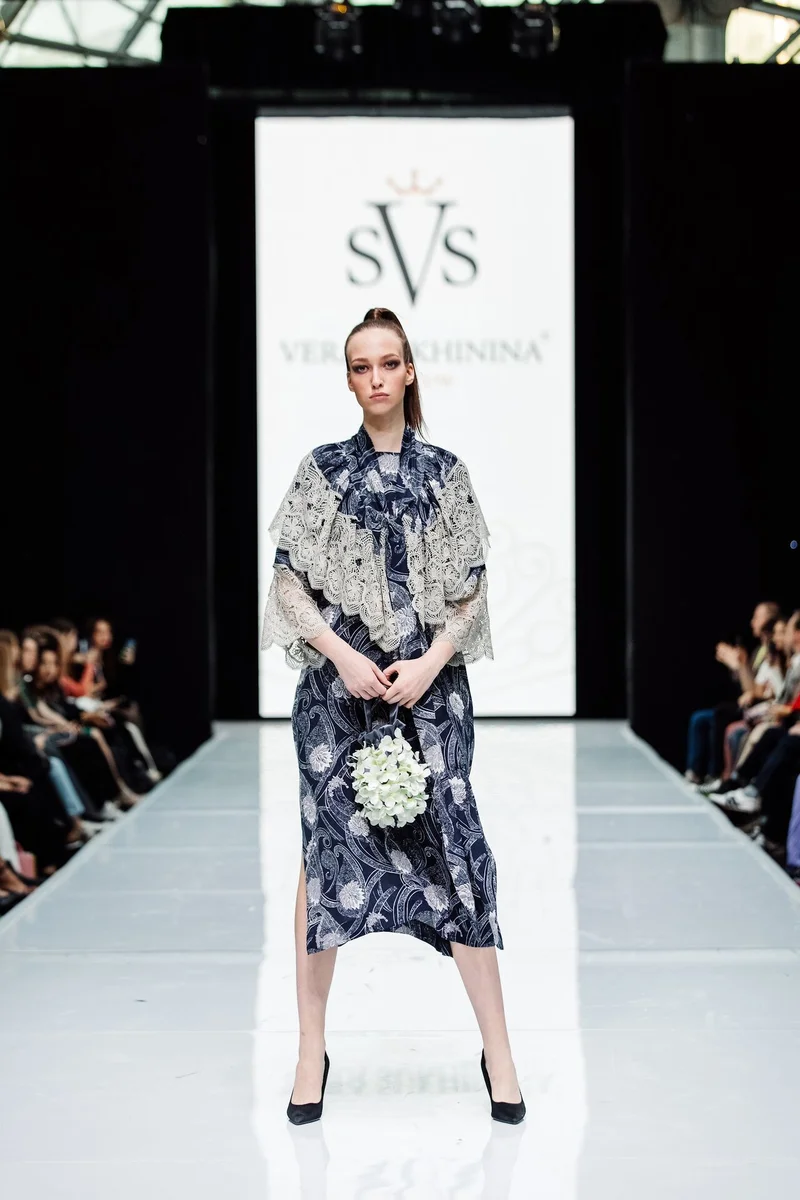 Далее свой показ представил бренд Olga Lyutich. Их коллекция «Мэри Поппинс» – это платья по мотивам знаменитого фильма, но на современный лад. Изделия не теряют актуальности, их легко можно сочетать в нынешнее время – например, воротники и шляпки, юбку миди и жабо. При создании коллекции учтены все пожелания Мэри и сохранен ее стиль.