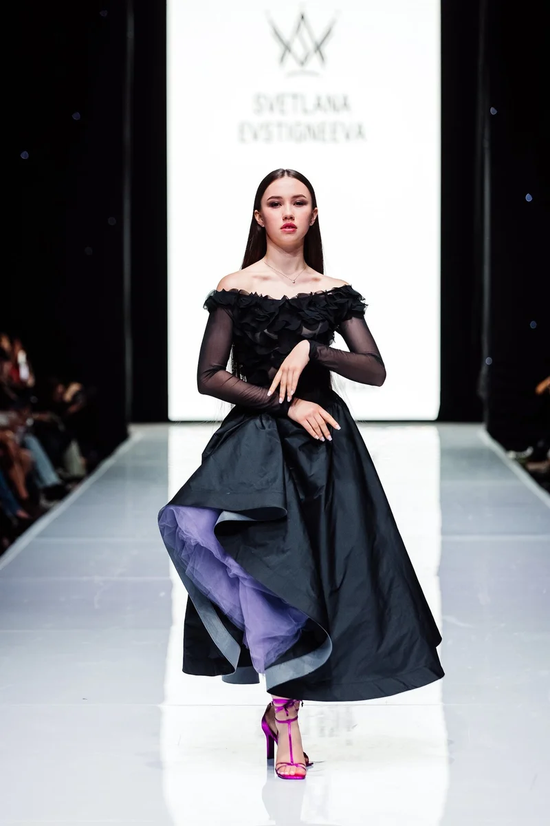 И завершил Неделю моды и ее пятый день показ от бренда Svetlana Evstigneeva. Гости увидели новую коллекцию вечерних платьев AMORE – они созданы для особых случаев. Модельер Светлана Евстигнеева при создании коллекции учитывала не только тренды и модные веяния сезона, но и женские состояния, которые могут вызывать платья. Такие платья магнетизируют, они имеют уникальный код, который выделяет вас среди других.