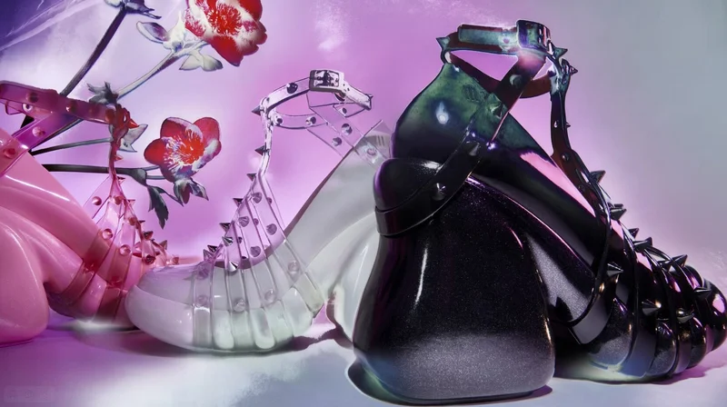 Представитель Melissa сказал описал коллекцию как "романтический готический стиль, легкий панк и хардкор 80-х". Прозрачные ремешки с шипами и округлая подошва - смотрится действительно несколько ретро. Коллаборация представлена в фотосессии Жан-Венсан Симоне - недавно этот фотограф уже работал с Jean Paul Gaultier.