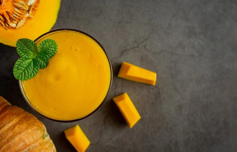 Тыкву для смузи используют только приготовленную, поэтому ее предварительно очищают от семян и запекают в духовке до тех пор, пока овощ не станет мягким.