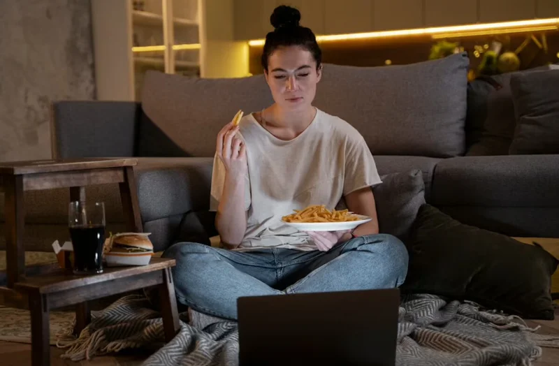Сначала может показаться, что это вообще не относится к пищевым привычкам, но в действительности это очень влияет на пищевое поведение и может серьезно повлиять на набор веса. Если во время приема пищи отвлекаться на гаджеты, то со временем произойдет замедление метаболизма. Из-за этого пища медленно переваривается и жир сжигается гораздо хуже.