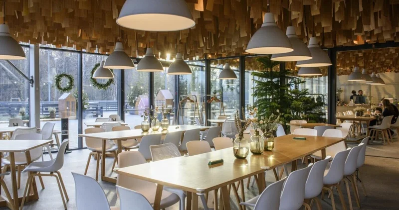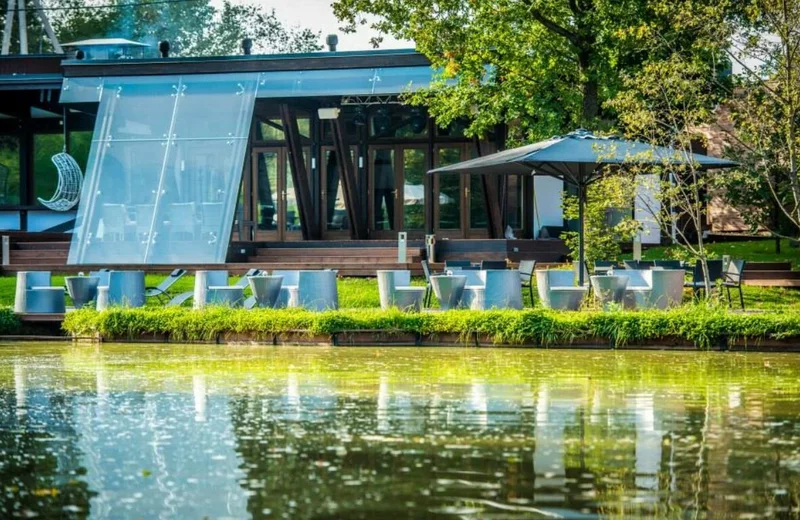 Ресторан находится возле загородного клуба, поэтому здесь можно прекрасно отдохнуть от быстрого ритма жизни мегаполиса. Здесь есть не только ресторан, но и собственный пляж, озеро, бассейн, тропа здоровья. Лучше всего приезжать сюда на весь день, чтобы устроить себе мини-отпуск и насладиться чистым воздухом в окружении хвойных деревьев.