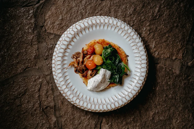 Драник с грибами и шпинатом Источник фото: Пресс-служба ресторана "Айна"