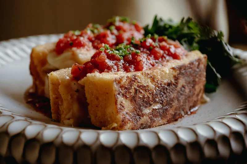 Гренка с курицей и сыром Источник фото: Пресс-служба ресторана "Айна"