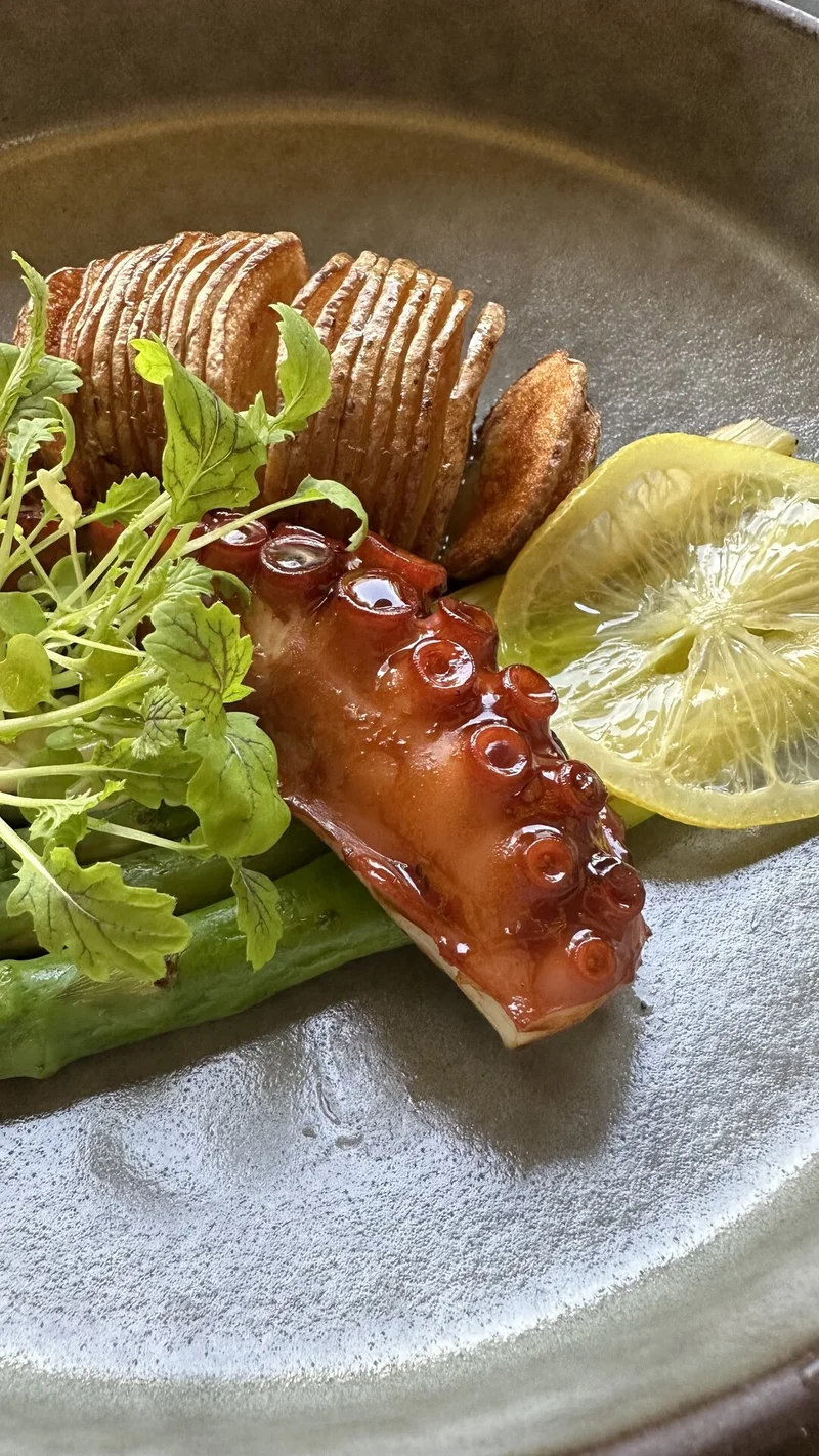 Щупальца осьминога со спаржей и картофелем по-скандинавски