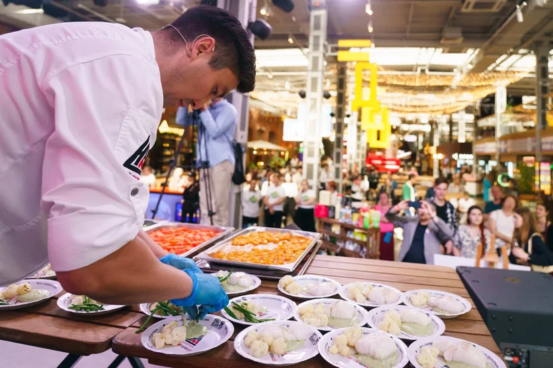 На главной сцене фудмолла шеф-повара провели мастер-классы по приготовлению блюд и поделились профессиональными секретами. Дети смогли попробовать приготовить печенье и поиграть в настольные игры в специальной детской зоне. Кроме того, на фестивале было проведено более 40 розыгрышей с ценными призами, гастрономическое гриль-путешествие и дегустация азотного мороженого. Завершилось грандиозное мероприятие выступлением победителя первой российской "Фабрики звезд" - группы "Корни"!