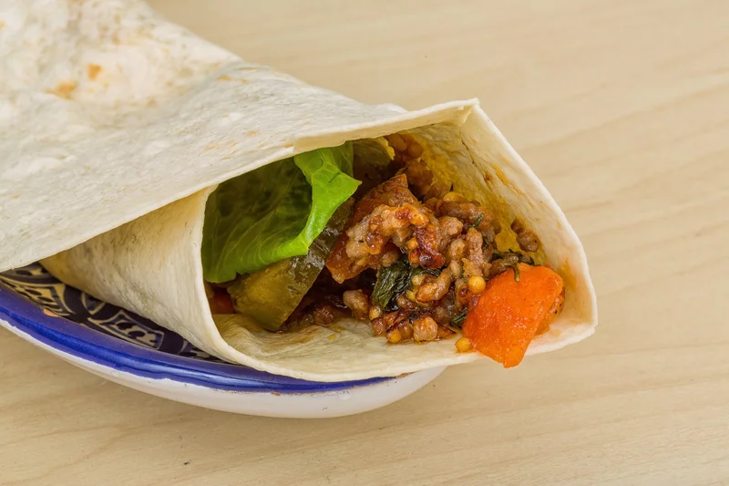 Буррито напоминает шаурму, но с богатой внутренней начинкой (не всегда острой). К примеру, в блюдо добавляют филе, фасоль, сыр, лук. Обязательное дополнение – сметана и свежий огурец