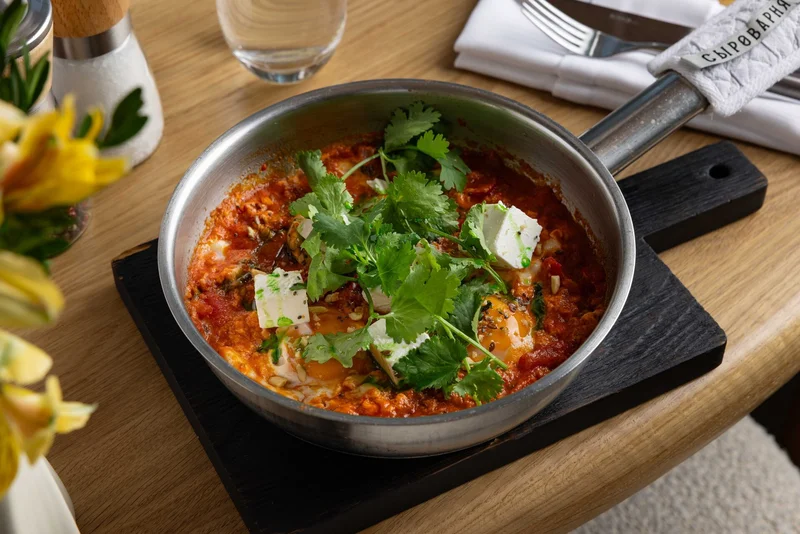 В ресторане на Пресненской шеф Виталий Лебедев приглашает всех на уютные вкусные завтраки. Можно расположиться в кафе, баре или основном ресторанном пространстве над шумом бизнес-центра и неспешно насладиться утром. Обязательно стоит попробовать омлет с тамбовским окороком и томатами или с моцареллой, шпинатом и перцем, а еще шакшука с брынзой. Очень нравятся здесь нежные сырники из рикотты со сметаной и вареньем и вареники с творогом и сметаной. Впрочем, хороши и разные виды брускетт: с авокадо и шпинатом; с тамбовским окороком; с ростбифом; со страчателлой и малосольным лососем. В будни завтраки можно попробовать с 8:00 до 12:00, в выходные — на протяжении всего дня.
