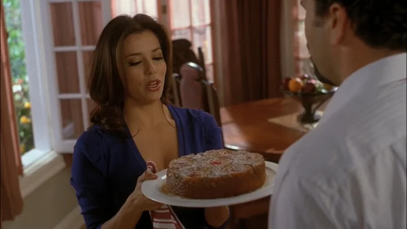 В сериале “Отчаянные домохозяйки” Ева Лонгория учиться делать ананасовый тарт татен. Забавная сцена с подменой пирога до сих любима многими. Особенность блюда в том, что колечки ананаса заливают тестом, а после готовности пирог переворачивают, и ананас оказывается сверху. Вкусный десерт понравится сладкоежкам.