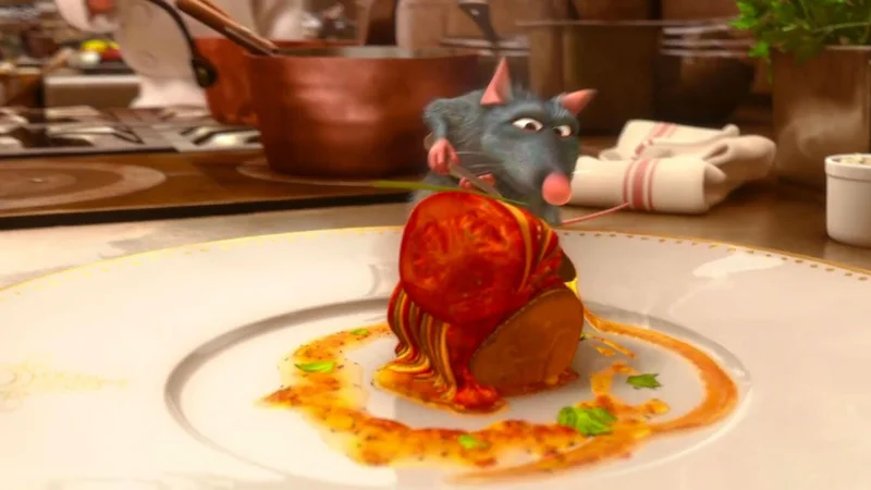 Это главное блюдо одноименного мультфильма. Крысенок Реми поразил ресторанного критика своим вариантом популярного французского рагу. Создатели мультфильма взяли этот рецепт у Томаса Келлера - всемирно известного повара, чьи рестораны удостоены награды Мишлен. Келлер одним из первых стал делать рататуй с тонкими кружочками овощей, в домашнем варианте их просто нарезают кубиками.