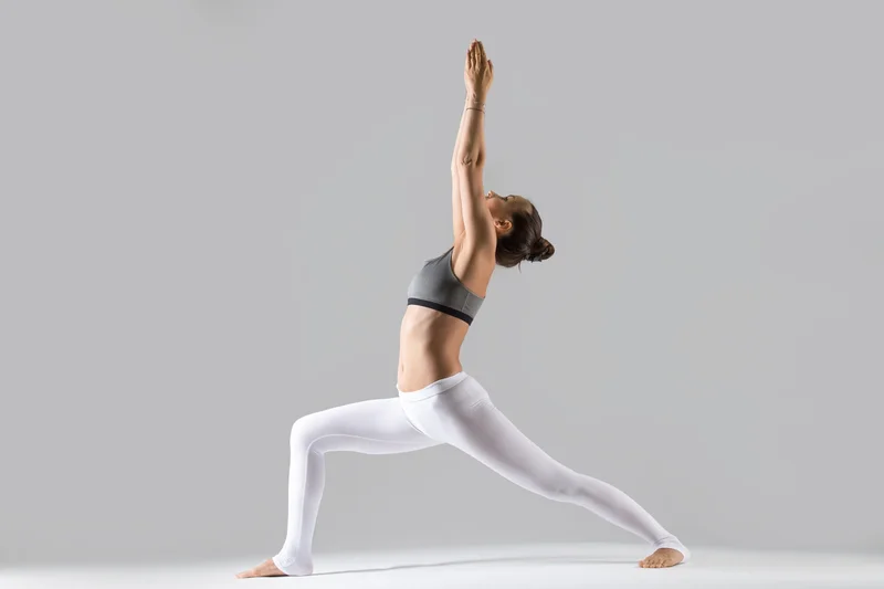 В эту позу выходят из предыдущей, сделав шаг одной ногой назад и поставив ее на носок. Переднюю ногу сгибают и следят за тем, чтобы колено не выходило за носок. Руки выпрямляют и поднимают над головой, ладони соединяют друг с другом.