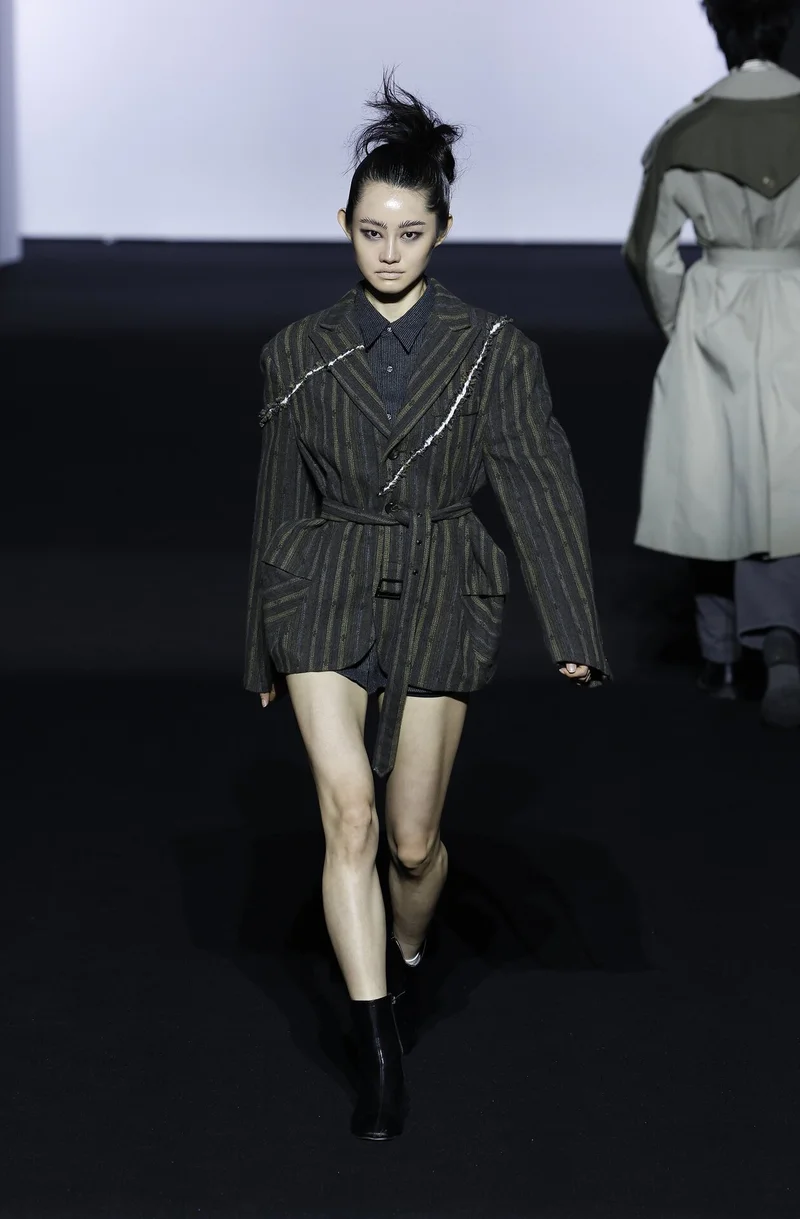 Необработанные края стали визитной карточкой показа. Пальто, объемные жакеты и другие модели были выполнены сразу из нескольких материалов и будто находились еще в процессе создания.