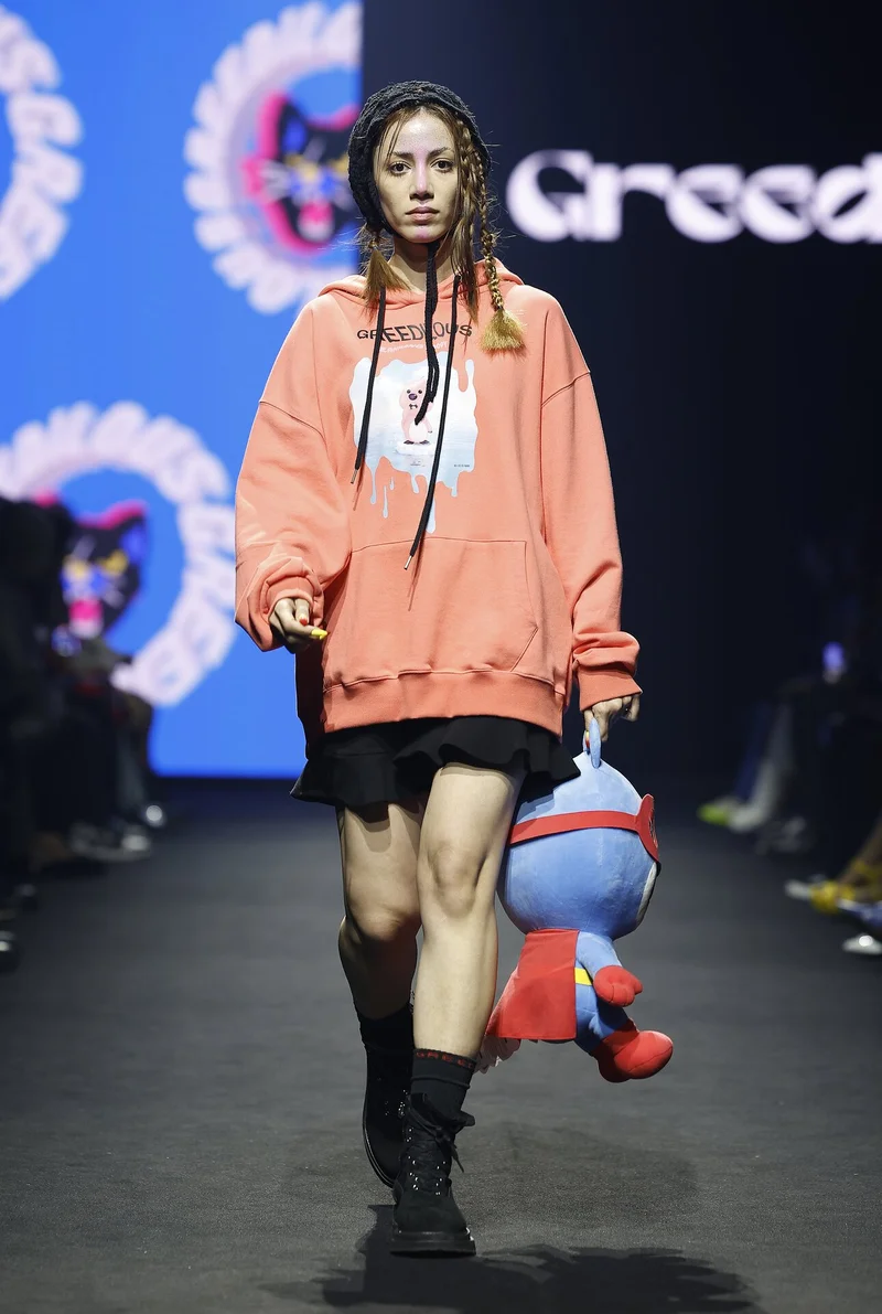 Бренд Greedilious активно продвигают футуристическую современную моду. Они объединяют все, до чего могут дотянуться. Основной акцент в этой коллекции - это разнообразие текстур, а также уличного стиля, многообразие принтов и ярких цветов.