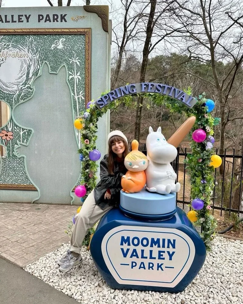 Звезда сериала «Эмили в Париже» захотела побывать в гостях у муми-троллей, поэтому первую остановку сделала в Moominvalley Park. Этот тематический парк посвящён муми-троллям. Фотографии с забавными персонажами книг Туве Яссон получаются очень яркими, сказочными и атмосферными — проверено Лили с мужем.