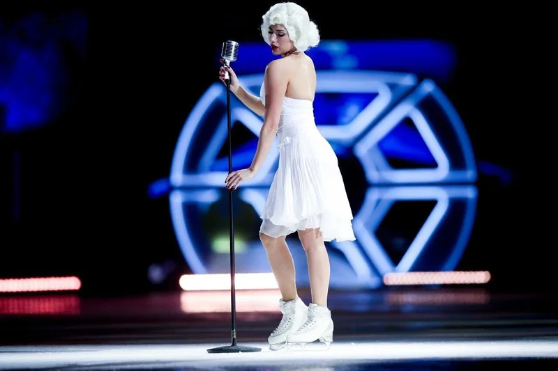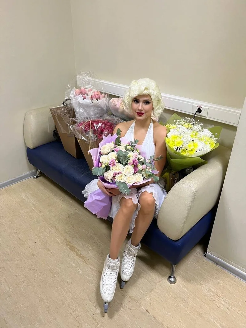 На выступлении на турнире шоу-программ на «Русский вызов» фигуристка появилась в одном из самых известных образов голливудской дивы — из фильма «Зуд седьмого года» — белоснежном летящем платье длиной до колена. Примерила Алина и соответствующий парик и голубые линзы.