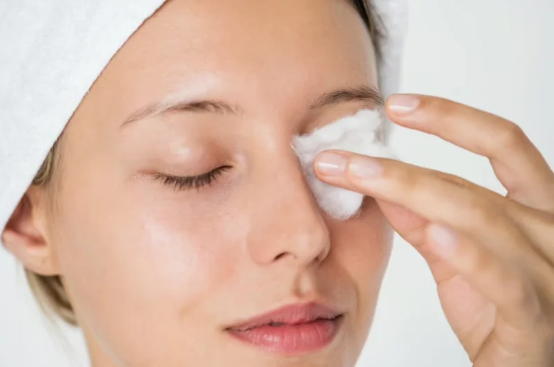 Ватным диском невозможно убрать все частицы косметики, даже если пройтись им несколько раз, но благодаря предыдущему этапу косметика становится водорастворимой и ее можно убрать.