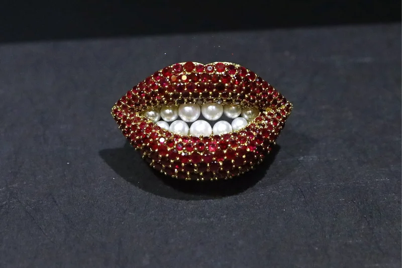 Брошь из жемчуга и рубинов, созданная ювелиром Генриком Кастоном по эскизу художника Сальвадора Дали, на выставке музеев Катара "Жемчуг: Сокровища морей и рек" Источник фото: Артем Геодакян/ТАСС