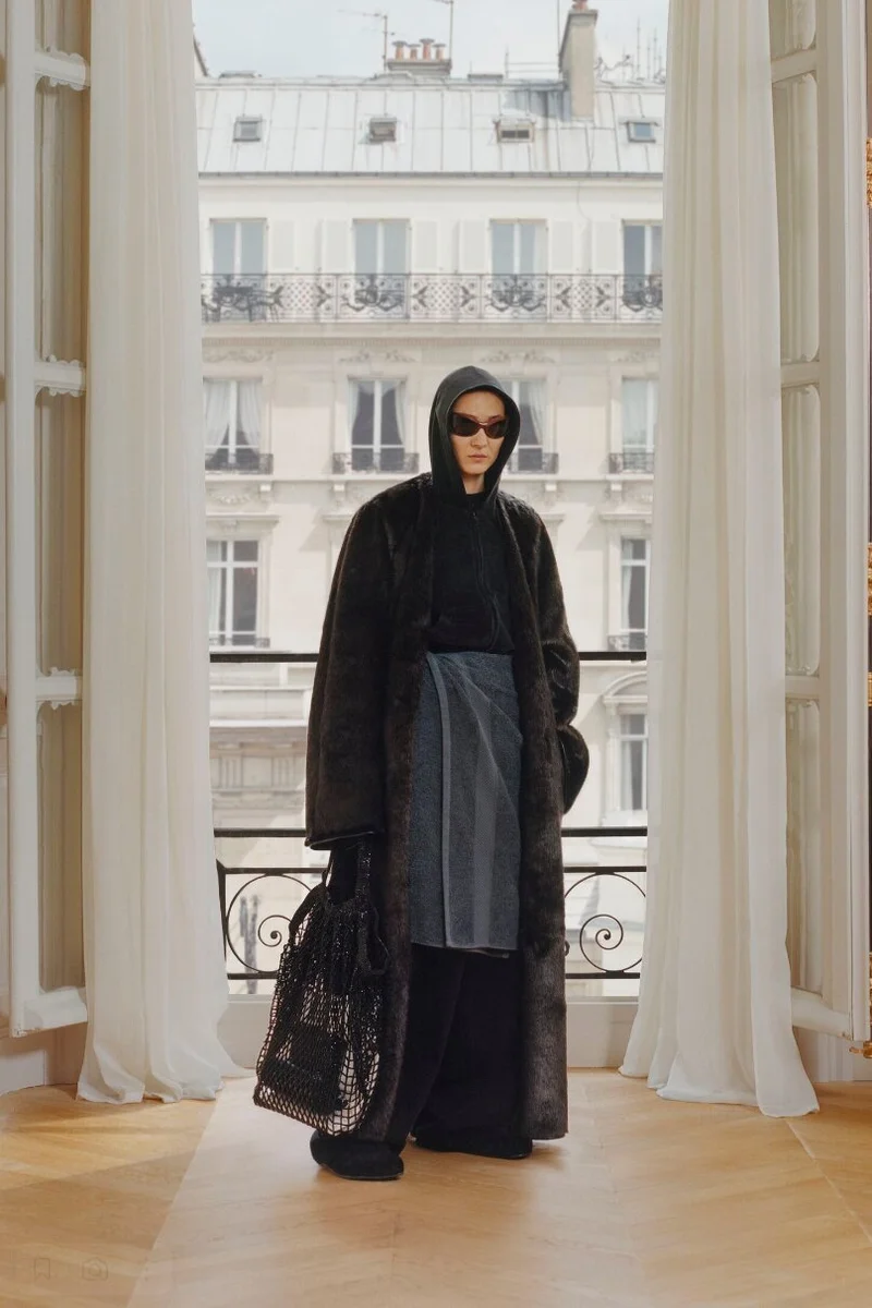 Кажется, будто в этой коллекции непривычно мало экстравагантных образов. Однако стоит приглядеться, и можно заметить обувь с гипертрофированно вытянутыми носами, длинные клатчи, укороченные толстовки и другие интересные модели.