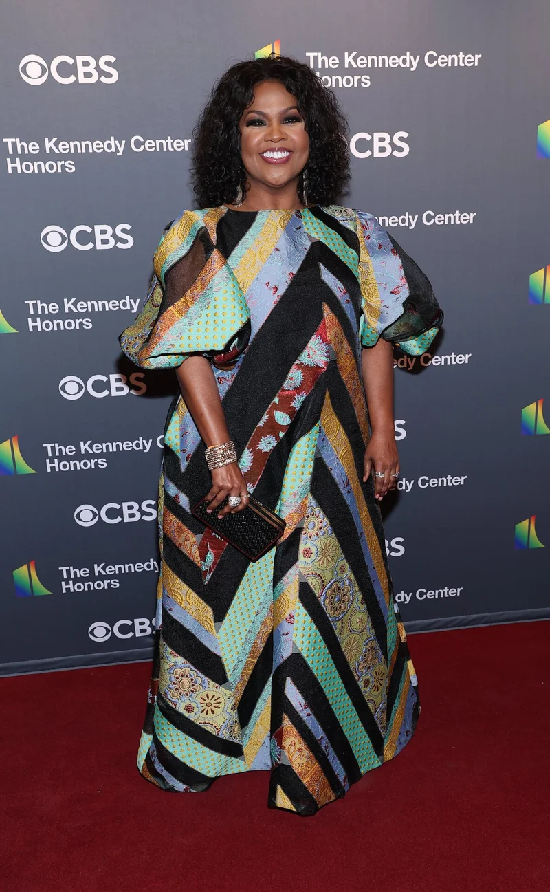 Исполнительница госпела, как всегда, покоряет своей улыбкой. Яркое платье с африканскими узорами отлично сочетается в внешностью певицы.
