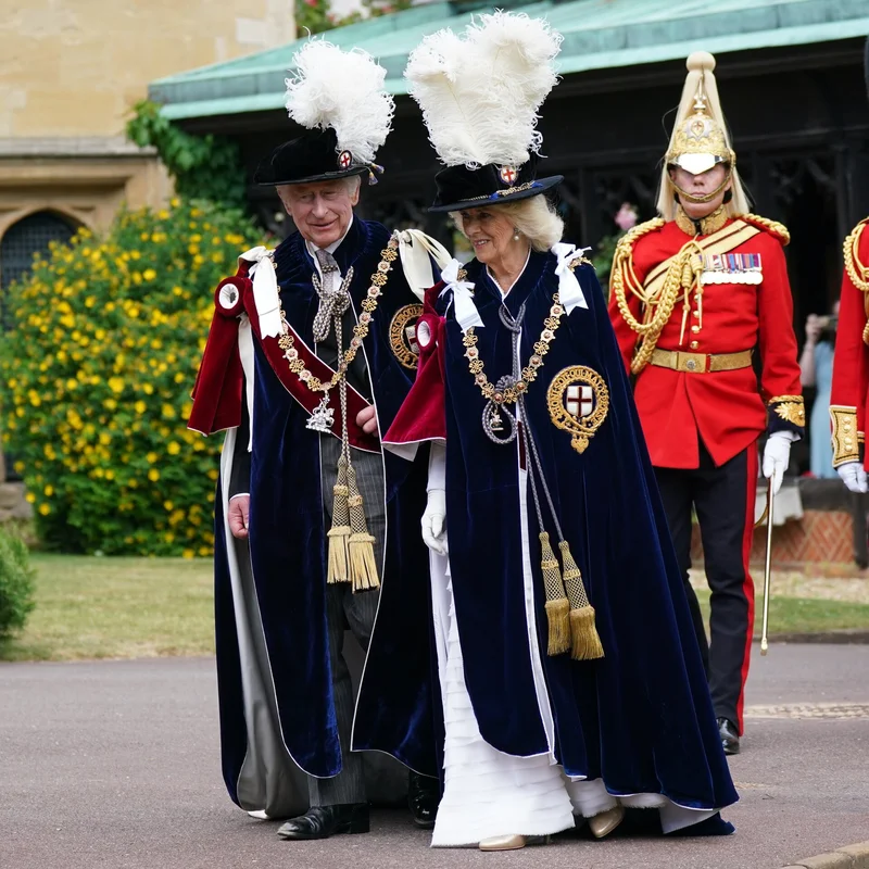 Король Карл lll и королева Камилла впервые возглавили историческую процессию Ордена Подвязки. По традиции, в ней принимает участие старшее поколение королевской семьи. За шествием от Виндзорского замка до часовни Святого Георга наблюдало 2900 человек. Рыцари выступили в темно-синих мантиях со знаками отличия и шляпах с перьями.