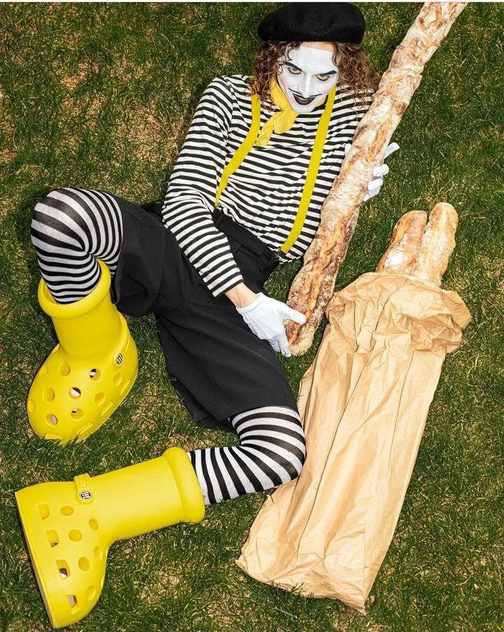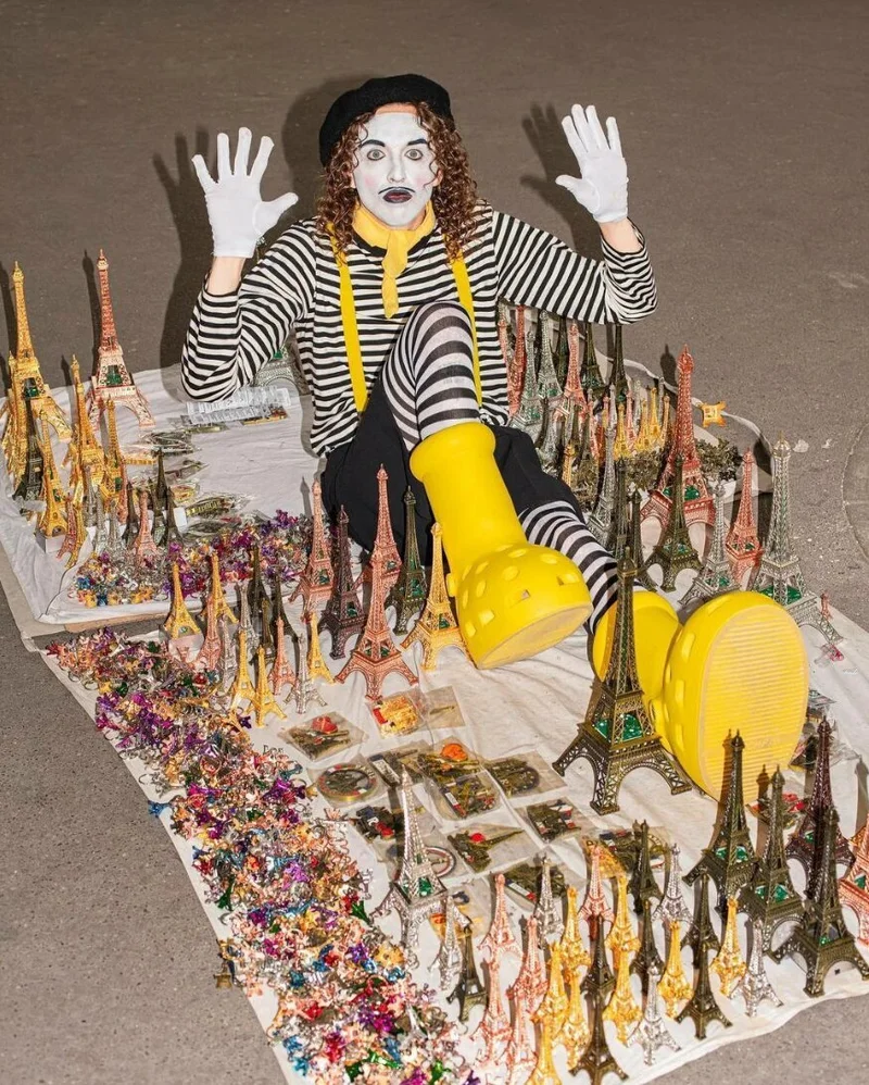 Новинку уже успел выгулять Томми Кэш, который устроил очередной перформанс на показе Rick Owens в Париже. Рэпер появился в образе мима, разбавленном ярко-желтой обувью, подтяжками и зонтиком. MSCHF и Crocs не могли бы устроить рекламную кампанию лучше. Без забавной фотосессии, разумеется, не обошлось.