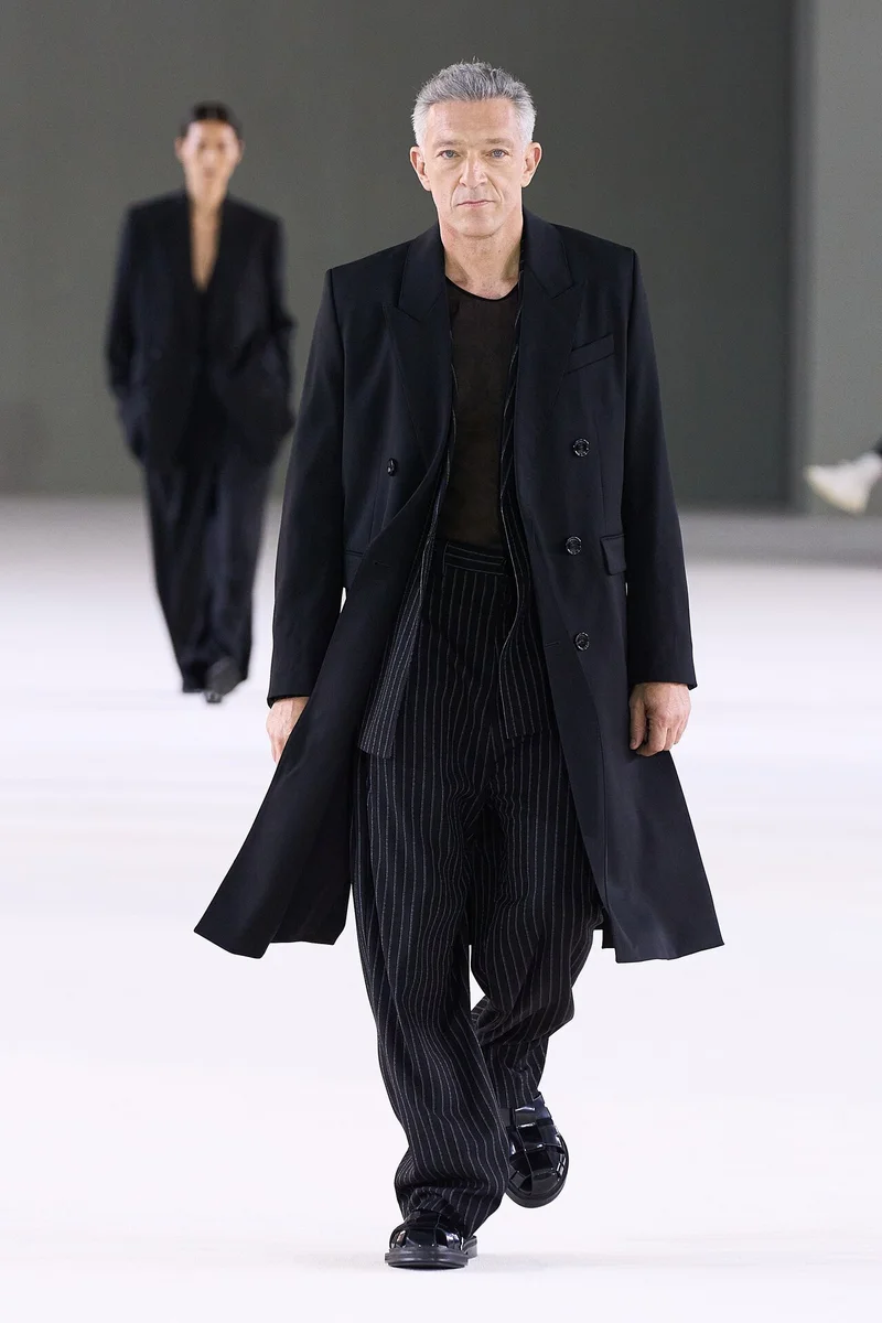 Появление Венсана Касселя для многих стало приятным сюрпризом во время показа новой коллекции Александре Маттьюсси. Актер вышел на подиум в черном двубортном пальто и широких брюках в полоску. Образ, безусловно, прекрасный, впрочем как и сам Венсан.