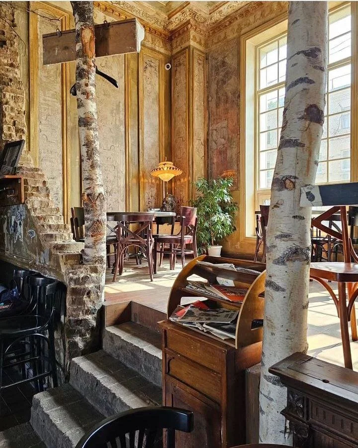 Ресторан русской кухни на Бауманской. В меню можно найти как макароны по-флотски, так и картофельные драники с красной икрой. Здесь большой выбор напитков, включая авторские настойки. Оформлено заведение в виде симбиоза старой Руси и всем знакомых элементах прошлого. Березы выполняют роль колонн, ветки от них тянутся по потолку. Также можно увидеть элементы хрущевки, сгоревшая изба и множество деталей интерьера, на которые стоит обратить внимание. Атмосферное место, которое немного напоминает интерактивный музей.