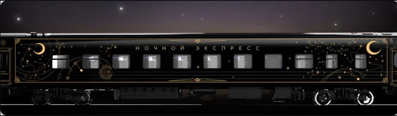 Вагоны нового поезда выкрашены в черный цвет и украшены золотистыми звездами, а интерьер выполнен в лаунж-дизайне. Пассажирам "Ночного экспресса" предоставят премиальное постельное белье и принадлежности.