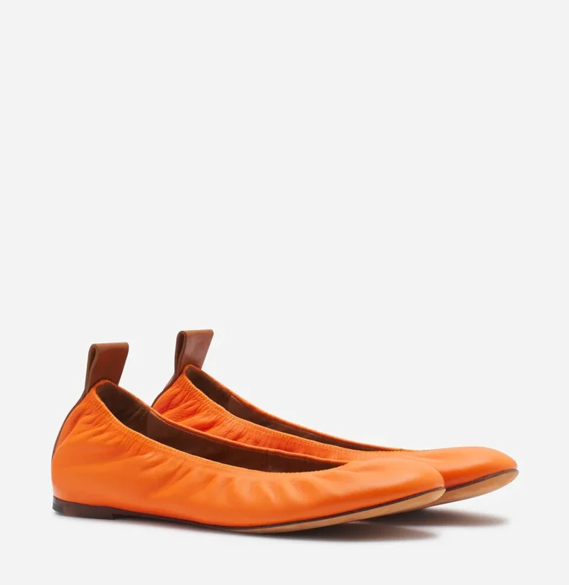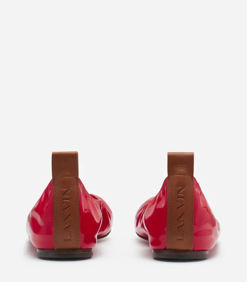 Каждая модель дополнена кожаным язычком с логотипом Lanvin на пятке. Ballerina представлена в нескольких цветах: мандарин, секвойя, темный беж, черный, золотистый и серебристый. Также в линейке есть варианты из лаковой кожи.