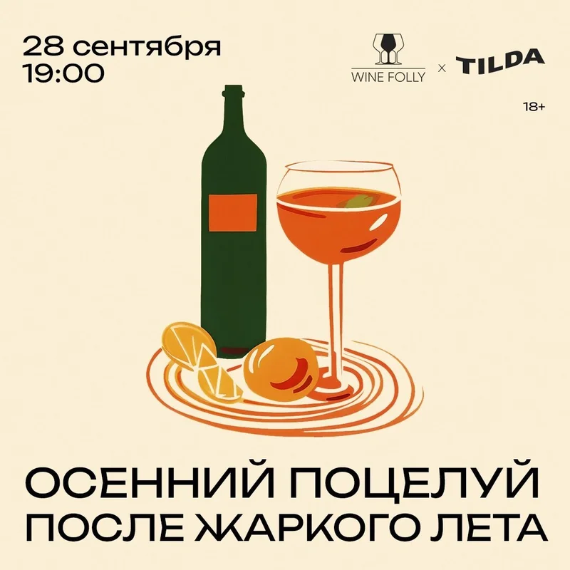 В уже полюбившемся проекте Wine Folly сразу два события, и оба достойны внимания (и посещения, разумеется). 21 сентября в 20:00 состоится вечер "Продлеваем лето в городе" с сомелье Ribambelle Никитой Стекольщиковым. Под его руководством можно попробовать четыре пары вин с берегов Адриатики. А через неделю, 28 сентября можно посетить совместную с проектом Tilda дегустацию "Осенний поцелуй после жаркого лета". Организаторы обещают яркий коктейльно-винный пейринг от шеф-бармена и сомелье.