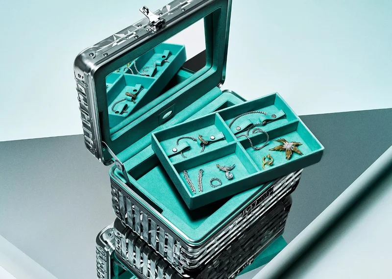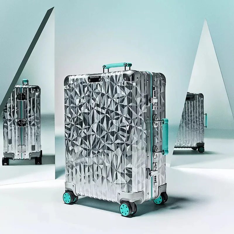 На этот раз Tiffany & Co. объединились с немецким производителем чемоданов премиум-класса Rimowa. Компании представили капсулу из алюминия и поликарбоната, в которую вошли два кейса и один чемодан.