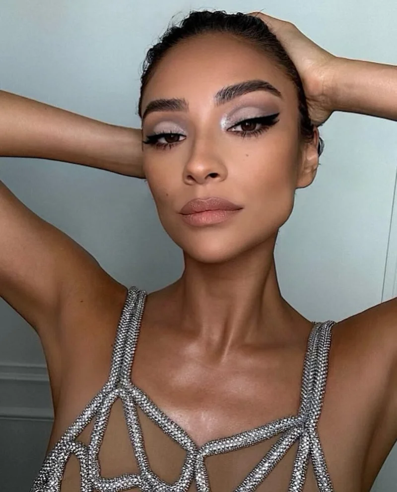 Небольшие блестящие акценты могут придать изюминку макияжу. Для этого достаточно осветлить внутренние уголки глаз или подчеркнуть smoky eyes блестками с эффектом инея. Также можно добавить тени с металлизированного оттенка на подвижную складку века.