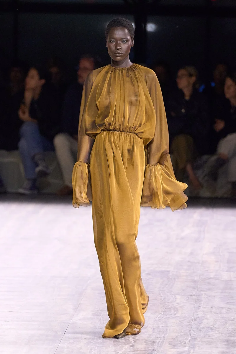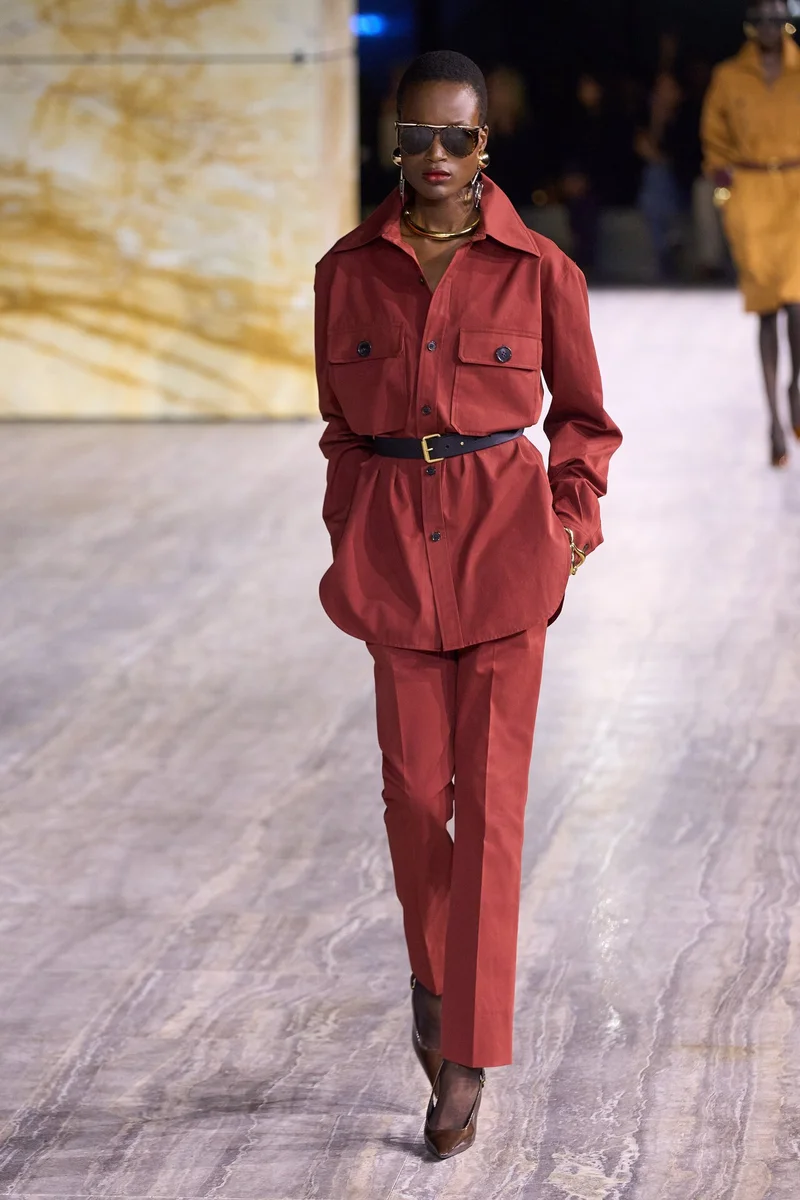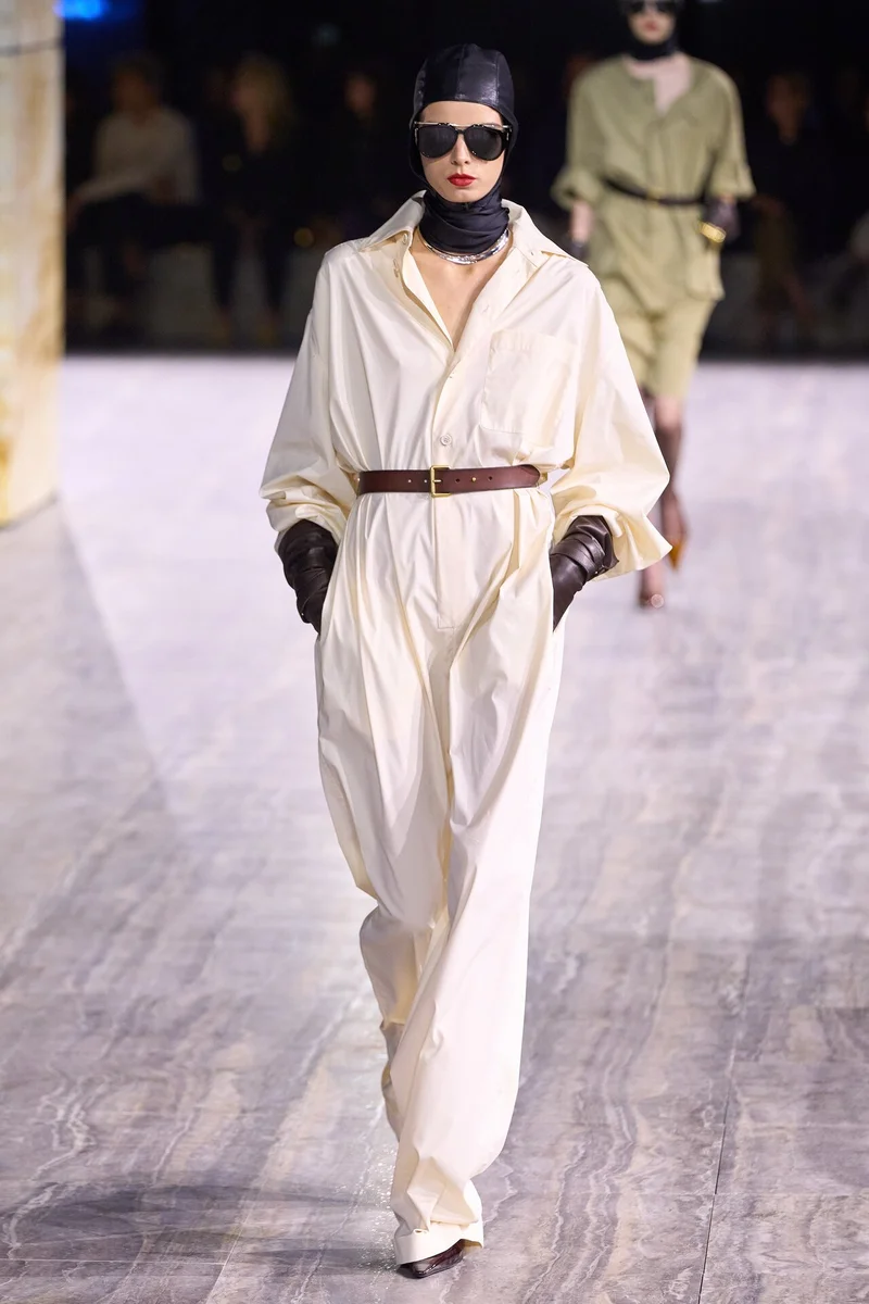Энтони Ваккарелло вдохновился архивными образами Saint Laurent для создания коллекции весна-лето 2024. Эстетику 70-х уже можно было увидеть на показах в Милане. Однако для французского бренда это оказались не трогательные платья с круглым воротником, а стиль сафари, основанный на одежде пилотов того времени.