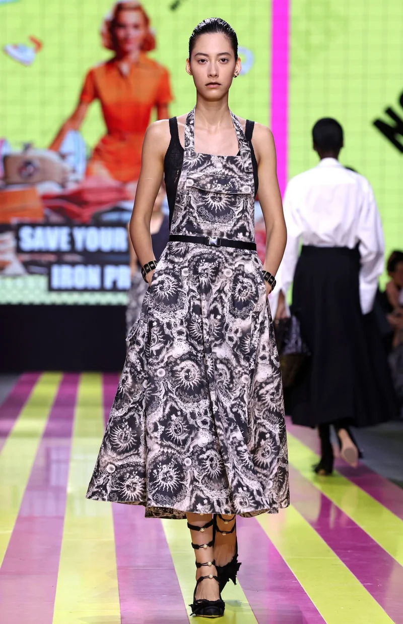 Еще одним интересным нарядом стало платье-фартук. Очевидно, оно стало исторической отсылкой, иронизирующей на тему женского образа.
