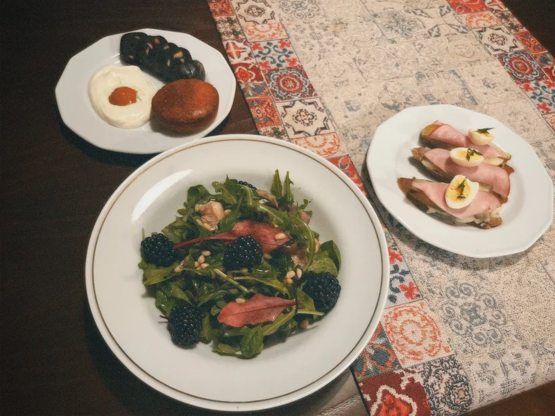 Для фестиваля меню "Модников" создал шеф-повар Лео Хинес. Он разработал сет, в котором соединил русско-европейскую гастрономическую культуру советских времен. Получился некий фьюжн из современности и истории. Для старта здесь подадут Берлинский салат в форме тапаса. Основным блюдом стал сытный теплый салат с ежевикой и цыпленком, а на десерт подают сладкую имитацию "Завтрака советского человека" с глазуньей, колбасой и кусочком хлеба.