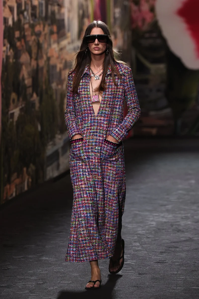 Показ Chanel в Париже: твидовые платья и вьетнамки