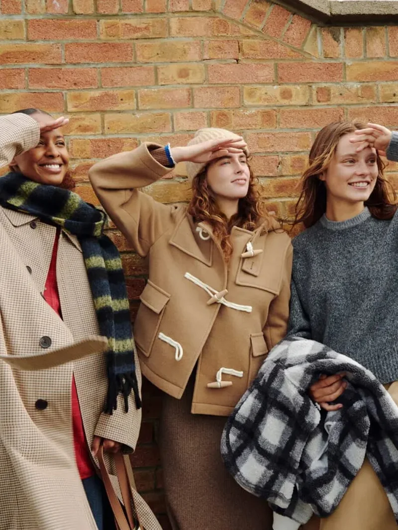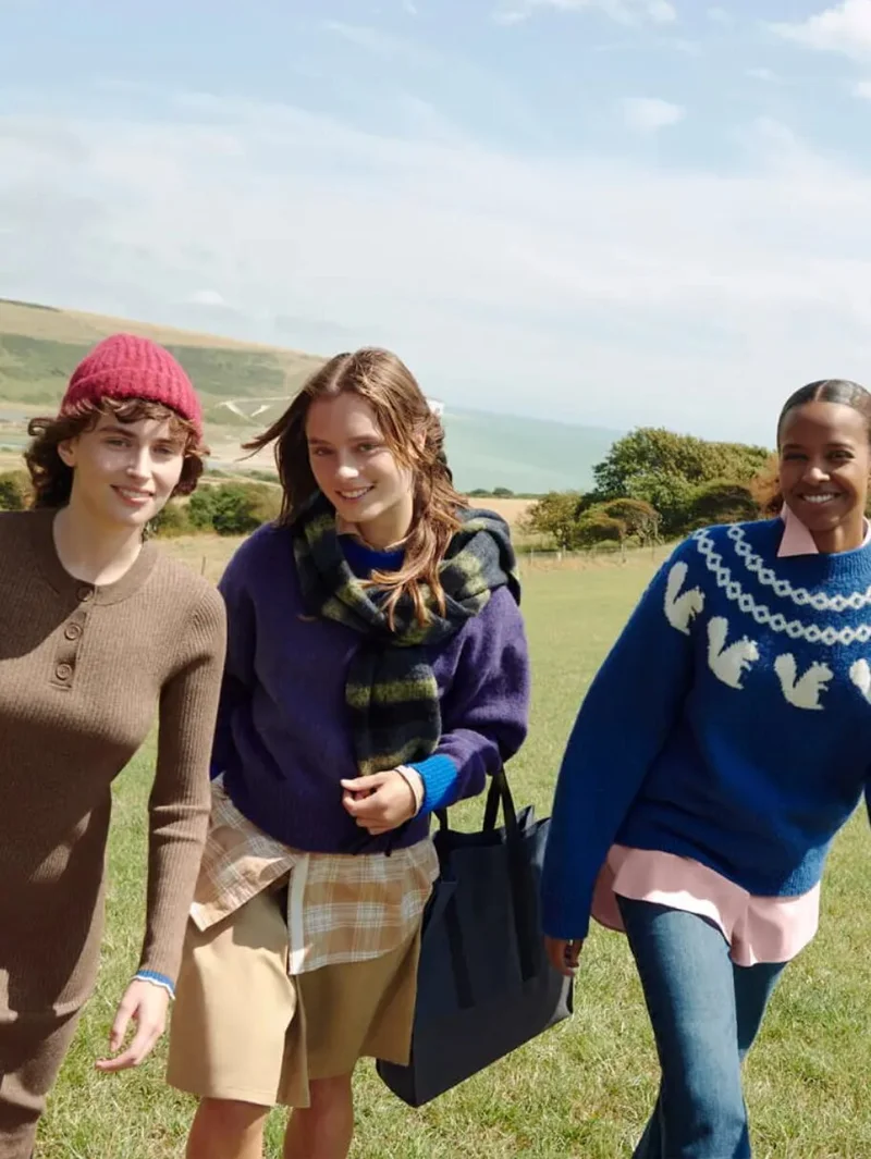 Теплые куртки с капюшоном, пальто, свитера и толстовки с принтами гармонично сочетаются с более строгими пиджаками, рубашками и юбками. Забавные носки, яркие шарфы и шапки отражают эстетику осенних загородных поездок.