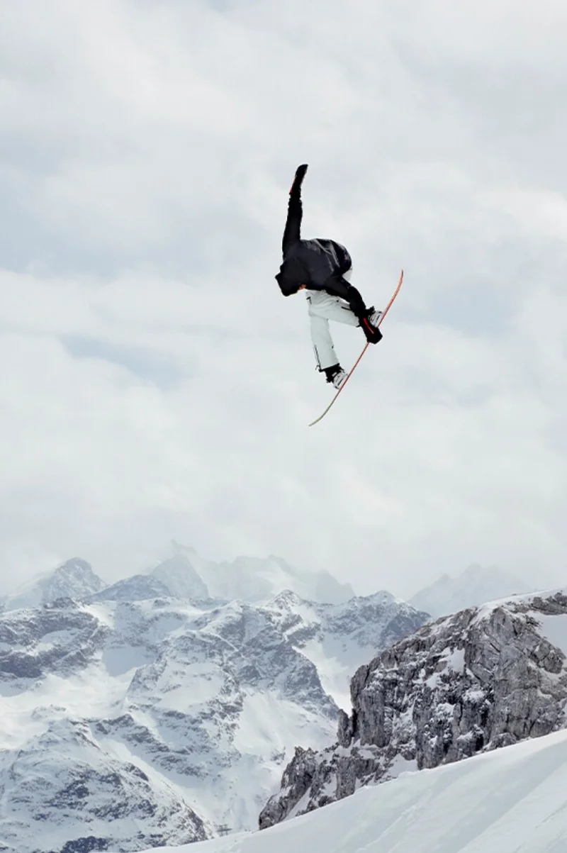 Linea Rossa ориентирована на активные зимние виды спорта. Горы Энгадина стали идеальным фоном для показа новых моделей. Кадры современного сноуборда сменяют снимки со скелетон-бобслеем и конькобежным спортом из прошлого. Получилось очень атмосферно и стильно.