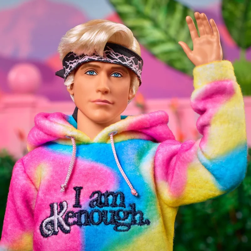 Mattel представили новинку в линейке кукол, выпущенных после премьеры фильма "Барби". Кен в виде Райана Гослинга в точности повторяет образ актера в яркой толстовке с надписью "I Am Kenough".