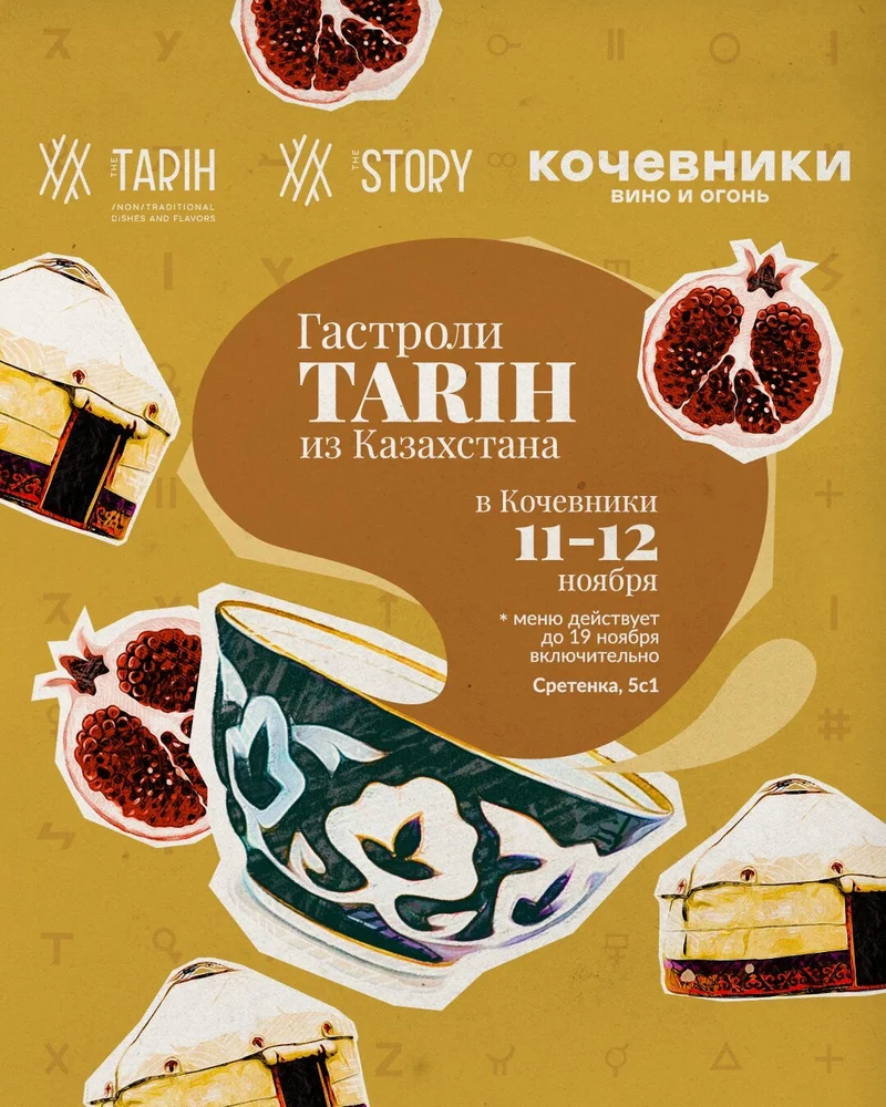 Бренд-шеф Владимир Шамоян продолжает знакомить с культурами разных народов. На этот раз в заведении гостит проект из Казахстана - бар Story & ресторан Tarih. 11 и 12 ноября всех желающих ожидают на гест, где будут подавать традиционные казахские блюда в авторской интерпретации и коктейли из концептуальной карты "Казахстан". Бесбармак в стиле лазаньи с казахскими деликатесами - казы и жая, тертым куртом и наваристым бульоном и коктейль "Апорт" на бурбоне с рассолом моченых яблок одноименного сорта. Такой опыт однозначно стоит получить. Если в выходные заглянуть не получится, познакомиться со специальным предложением можно до 17 ноября включительно.