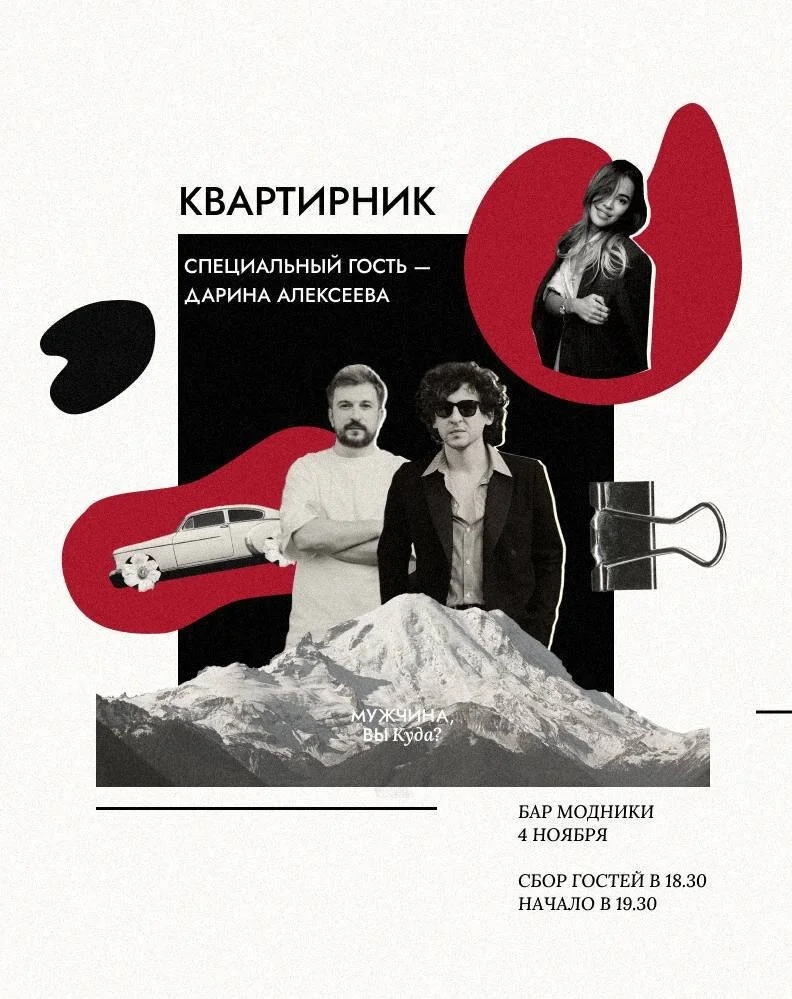 Бар на Маросейке приглашает на квартирник, организованный совместно с авторами телеграм-канала "Мужчина, вы куда?" Гришей Тумановым и Славой Козловым. Гостей ждет душевный вечер с общением на острые темы, волнующие и мужчин, и женщин. Во время стендап-беседы мужскую компанию разбавит автор известного телеграм-канала "Бахчисарайские гвоздики" Дарина Алексеева. После запланирована вечеринка под диджейские сеты Black Lenin и Artem Chelbaev. Спешл на вечер - три авторских коктейля.