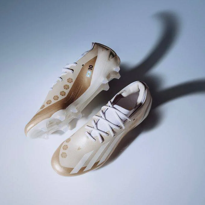 Также компания выпустила новые бутсы золотистого цвета. Лимитированная модель украшена изображением восьми золотых мячей, флагом Аргентины и игровым номером спортсмена. С другой стороны кроссовок расположились имена детей и жены Месси, а также даты их рождения.