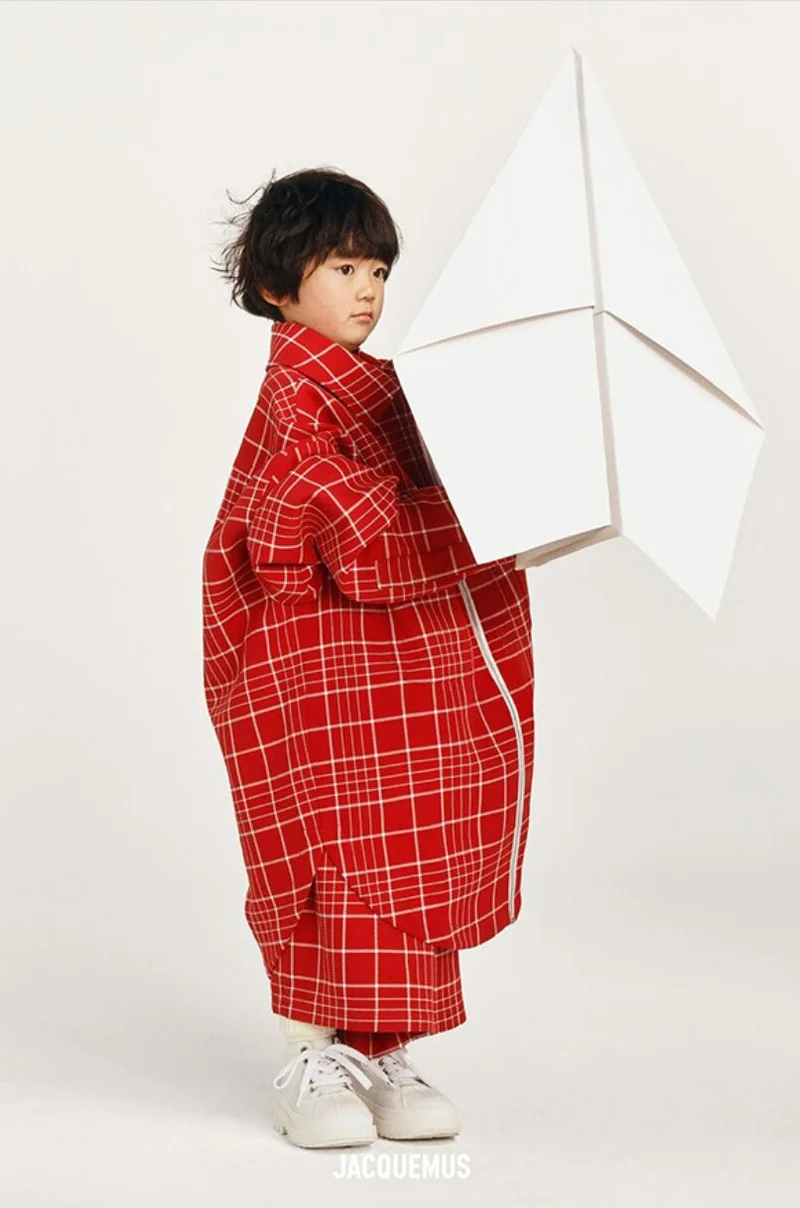 Забавная фотосессия запечатлела малышей в одежде и аксессуарах большого размера - они будто взяли наряды из родительского шкафа. Коллекция состоит из базовых продуктов Jacquemus, выполненных в красных, коричневых и красных оттенках.